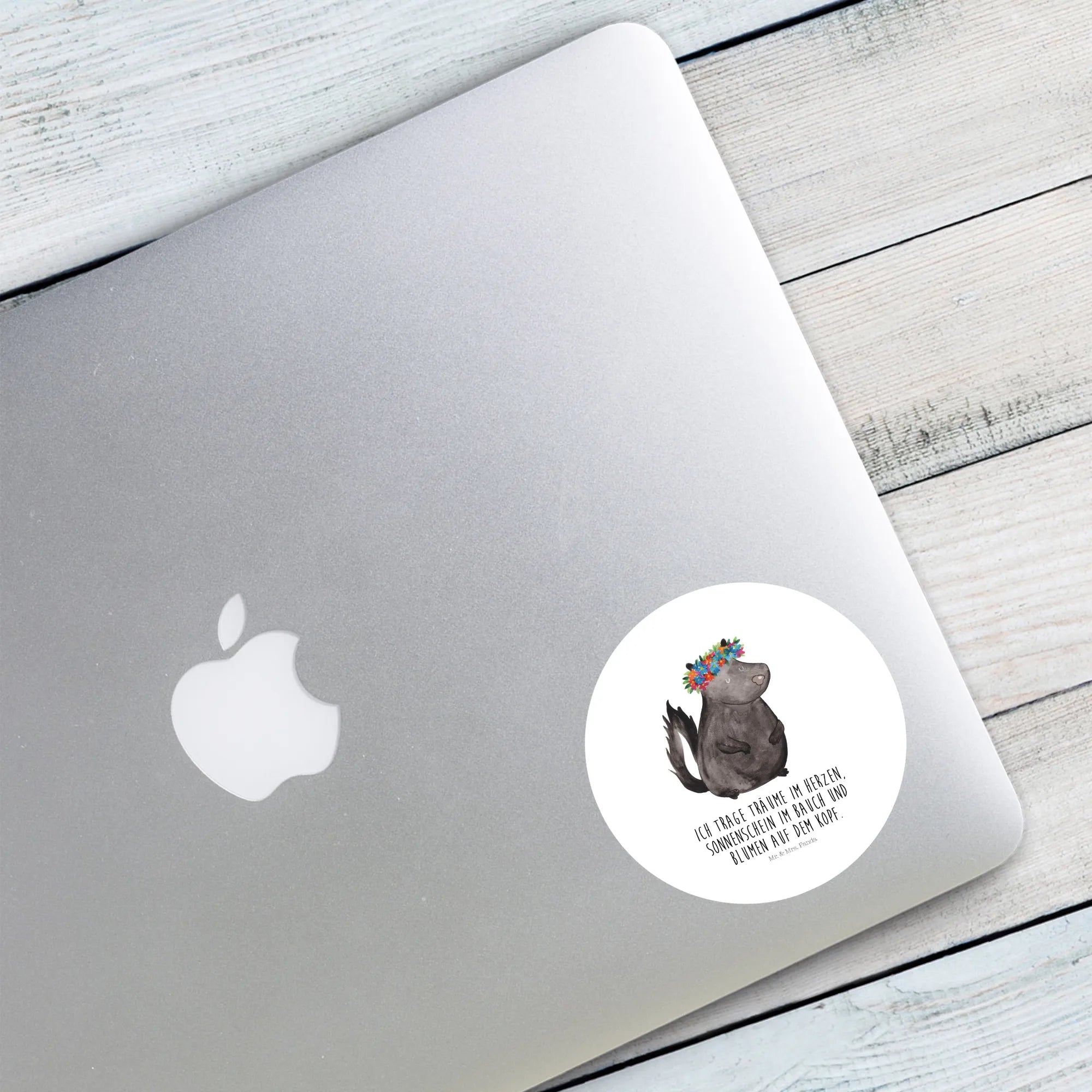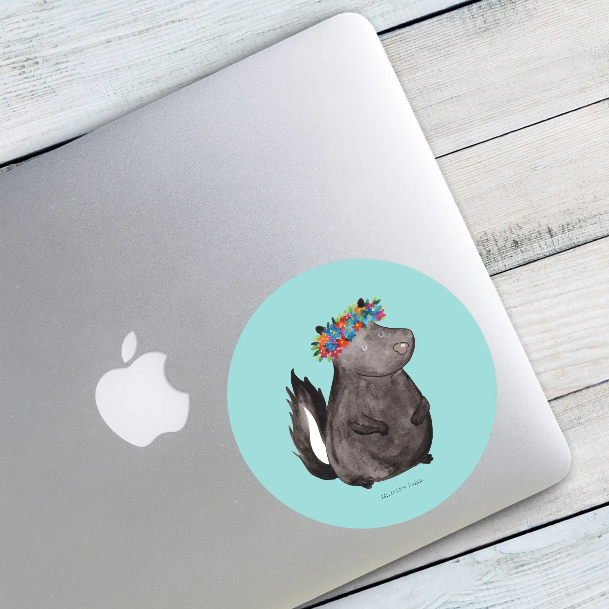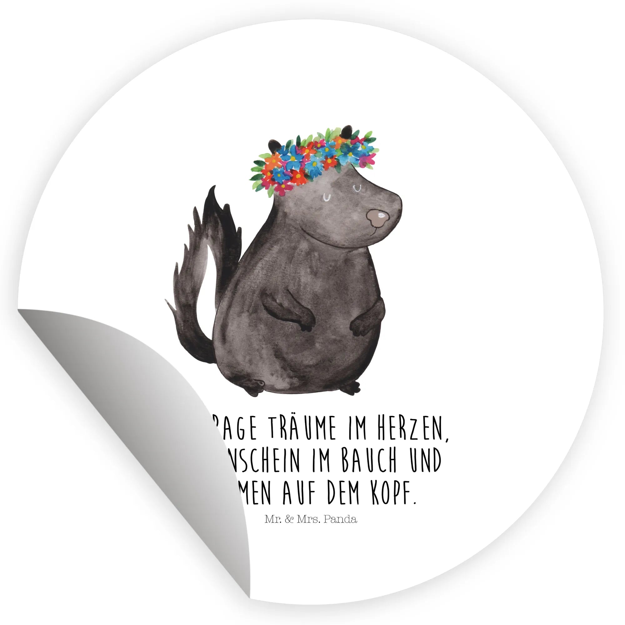 Das 80mm Rund Aufkleber Stinktier Blumenmaedchen von Mr. & Mrs. Panda ist das perfekte Geschenk für alle Naturliebhaber und Freunde einzigartiger Kunst! Dieser hübsche Aufkleber bringt Freude in jede Ecke, ob im Büro, im Kinderzimmer oder als Geschenk für anstehende Feiern. Das süße Stinktier mit einem bunten Blumenkranz auf dem Kopf ist ein echter Hingucker und versprüht gute Laune. Das Motiv steht für die Freude am Leben, das die Natur uns bietet. Egal ob zu Geburtstag, Taufe, Hochzeit oder einfach mal so – dieser Sticker ist ideal, um jemandem ein Lächeln ins Gesicht zu zaubern!