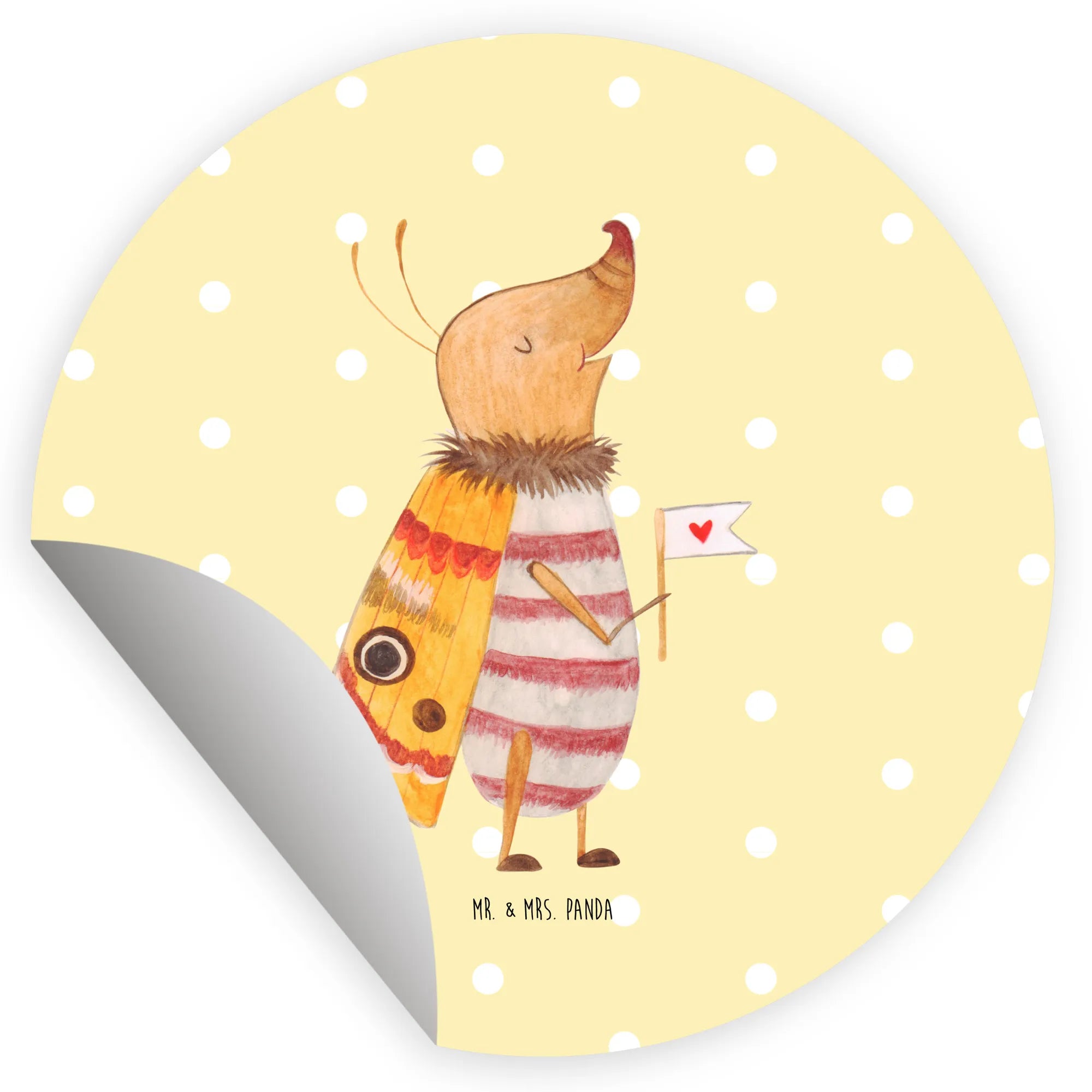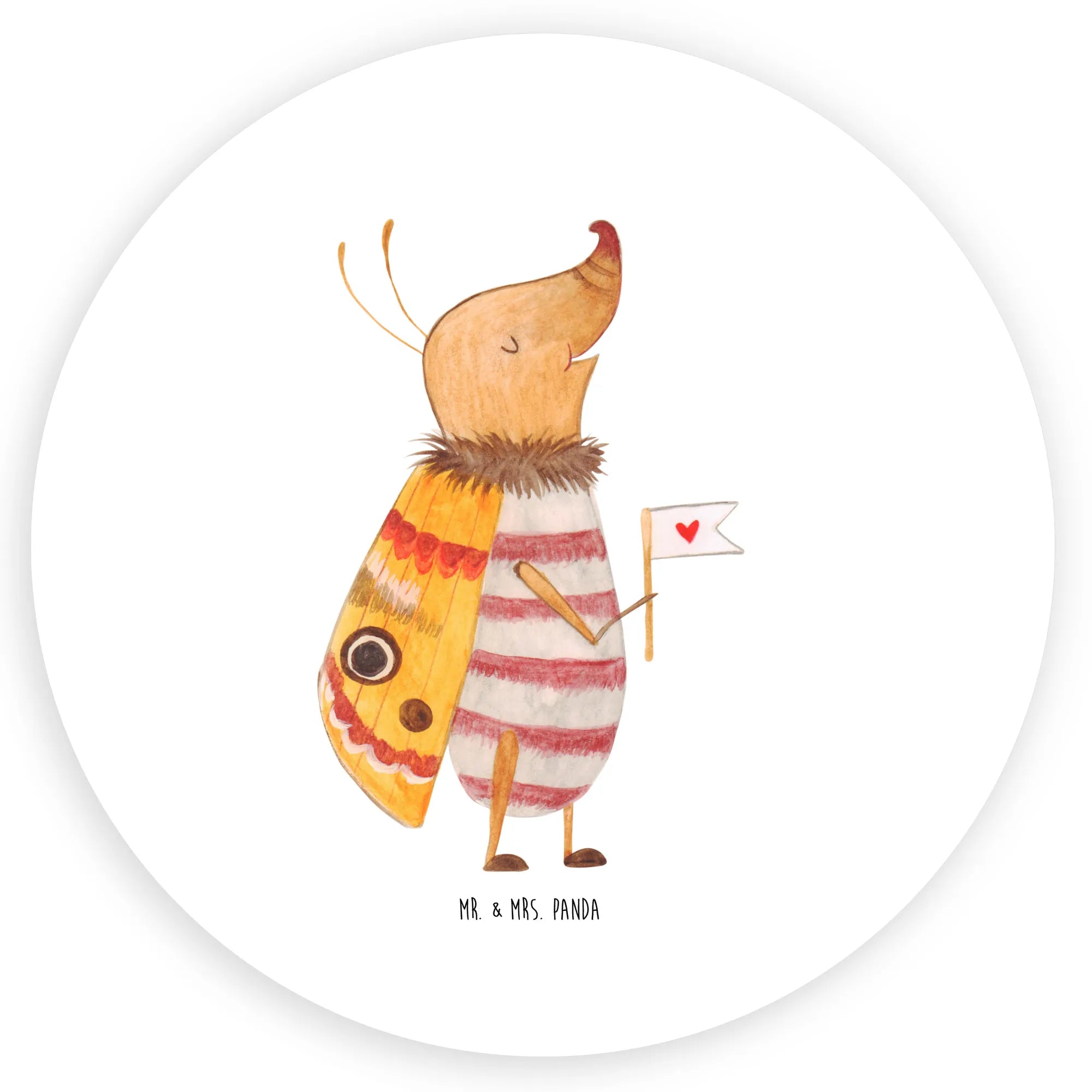 Entdecke den 120mm Rund Aufkleber "Nachtfalter mit Fähnchen" aus der liebevollen Small World Kollektion von Mr. & Mrs. Panda. Dieses niedliche Motiv zeigt einen kleinen Nachtfalter mit einer herzförmigen Fahne, der mit einem Lächeln auf Entdeckungsreise geht. Ein zauberhafter Sticker, der Deinem Alltag sofort Wärme und Charme verleiht.