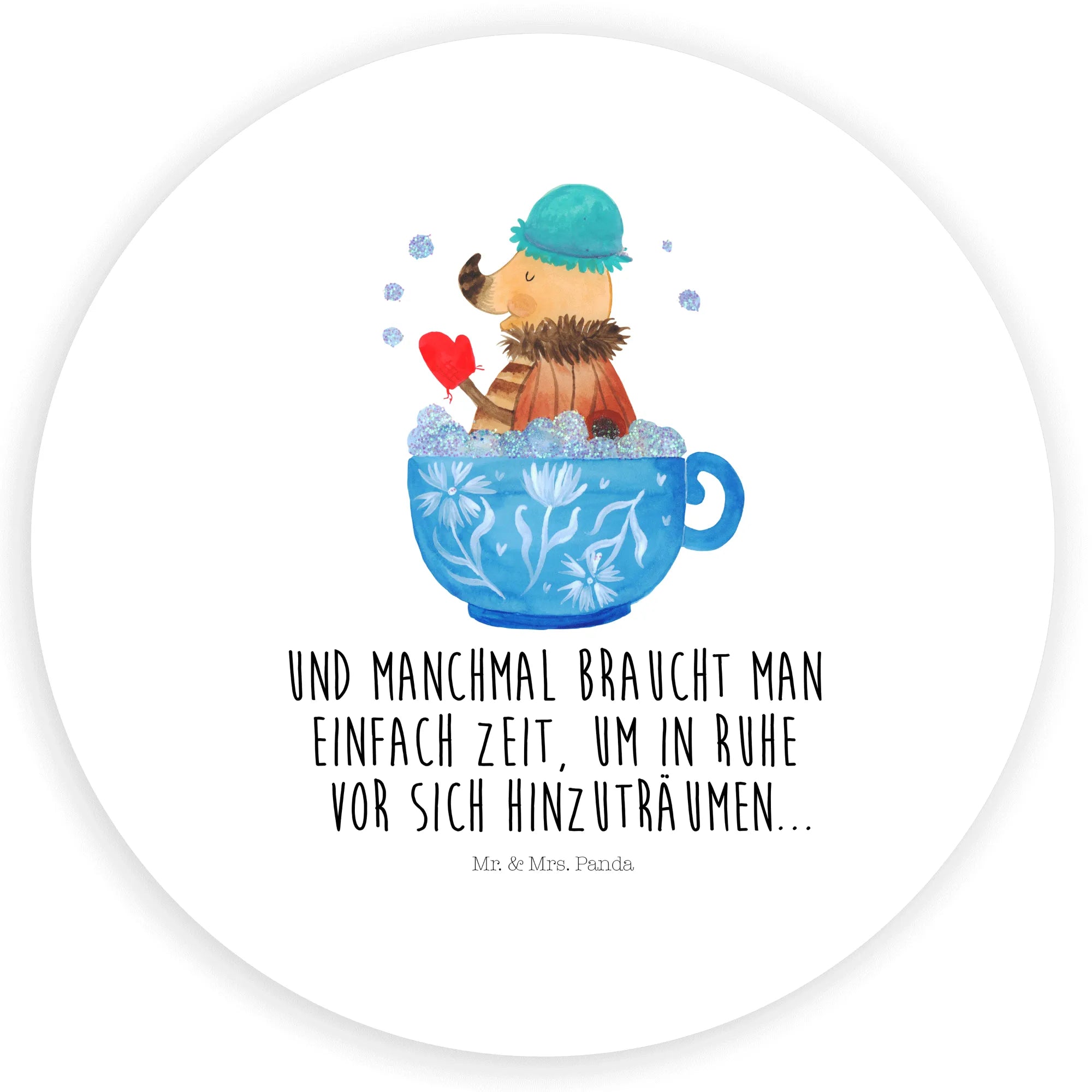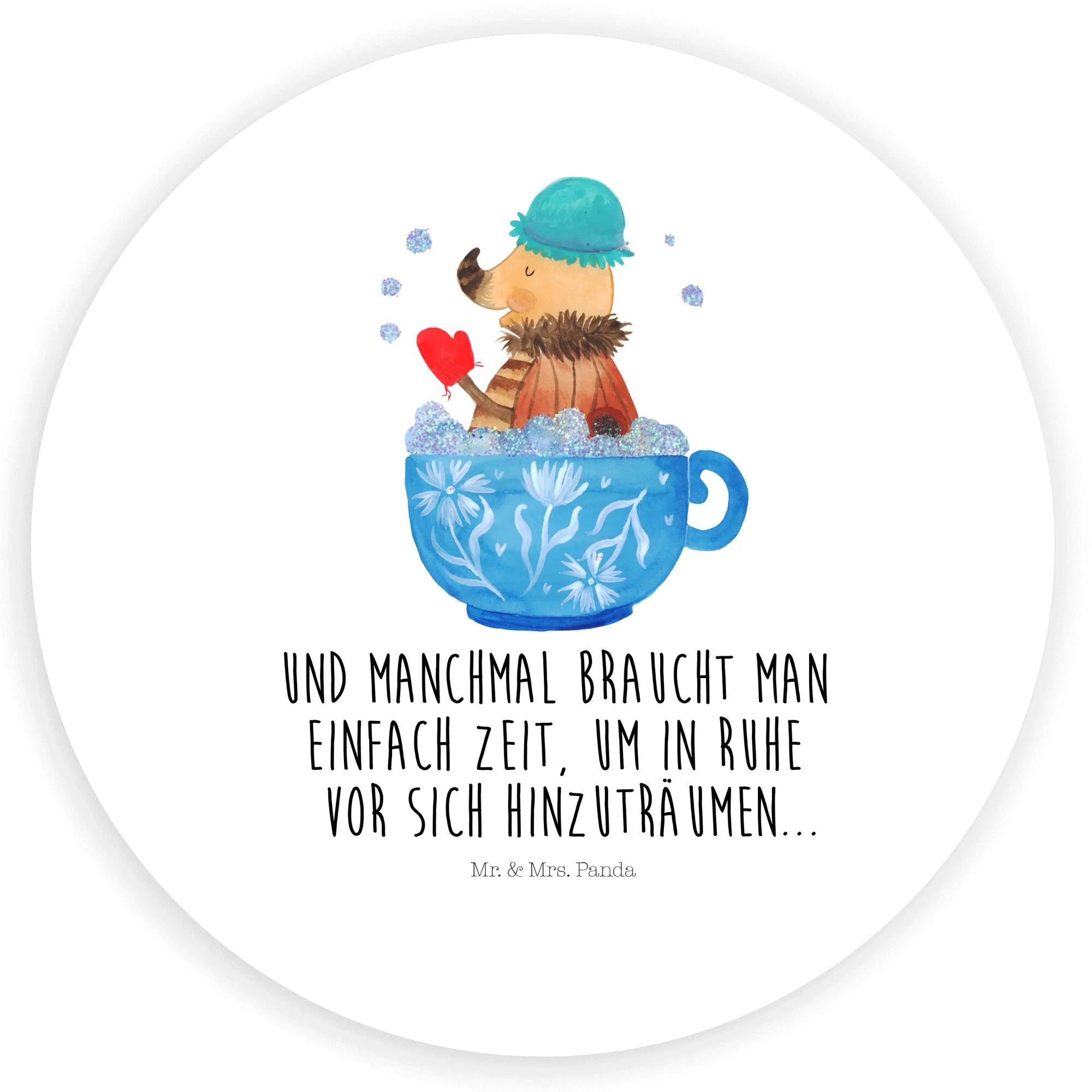 Kannst du dir vorstellen, wie es sich anfühlen würde, für einen kurzen Moment all deine Sorgen hinter dir zu lassen und in eine Tasse voll Schaumbad einzutauchen, genau wie der süße Nachtfalter von Mr. & Mrs. Panda? Dieses Motiv fängt die pure Essenz von Ruhe und Zufriedenheit ein. Der Spruch 'Und manchmal braucht man einfach Zeit, um in Ruhe vor sich hin zu träumen...' spricht zu jedem von uns mit einer sanften Stimme, die sagt: Es ist in Ordnung, eine Pause zu machen, tief durchzuatmen und die Seele baumeln zu lassen. Dieses liebevolle Kunstwerk lädt uns ein, das Badezimmer als unseren persönlichen Traumort zu sehen, wo wir uns erlauben können, verträumt und frei zu sein, weit entfernt von den Anforderungen des Alltags.