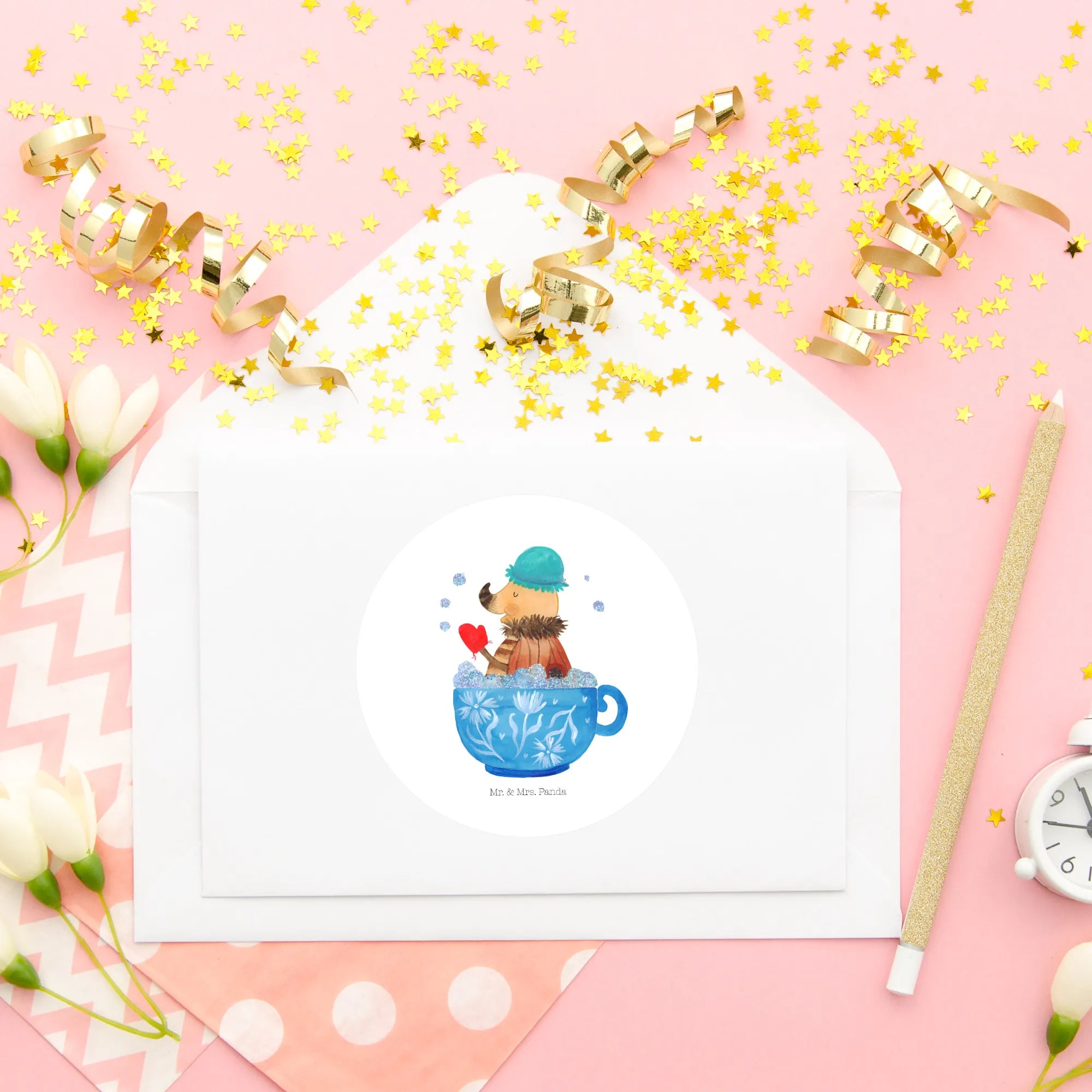 Die perfekte kreative Lösung – unser 80mm Rund Aufkleber von Mr. & Mrs. Panda! Dieser wunderschöne Aufkleber bringt Freude in deinen Alltag. Mit einem Durchmesser von 80 mm x 80 mm eignet er sich hervorragend, um Schulhefte oder Notizbücher individuell zu gestalten. Der Aufkleber ist aus hochwertiger Premium Folie gefertigt, und der edle Druck garantiert eine lange Haltbarkeit. Egal ob auf Papier, Holz oder Kunststoff – die Aufkleber kleben auf allen Untergründen! Sie sind nicht nur einfach anzubringen, sondern lassen sich auch rückstandslos entfernen, was sie zu einer praktischen Wahl für jedes kreative Projekt macht. Verwende sie zum Scrapbooking, Journaling oder um deinen Terminkalender zu verschönern. Die runde Form bringt einen besonderen Charme in deine Designs, also lass deiner Kreativität freien Lauf und gestalte deine Welt bunter!
