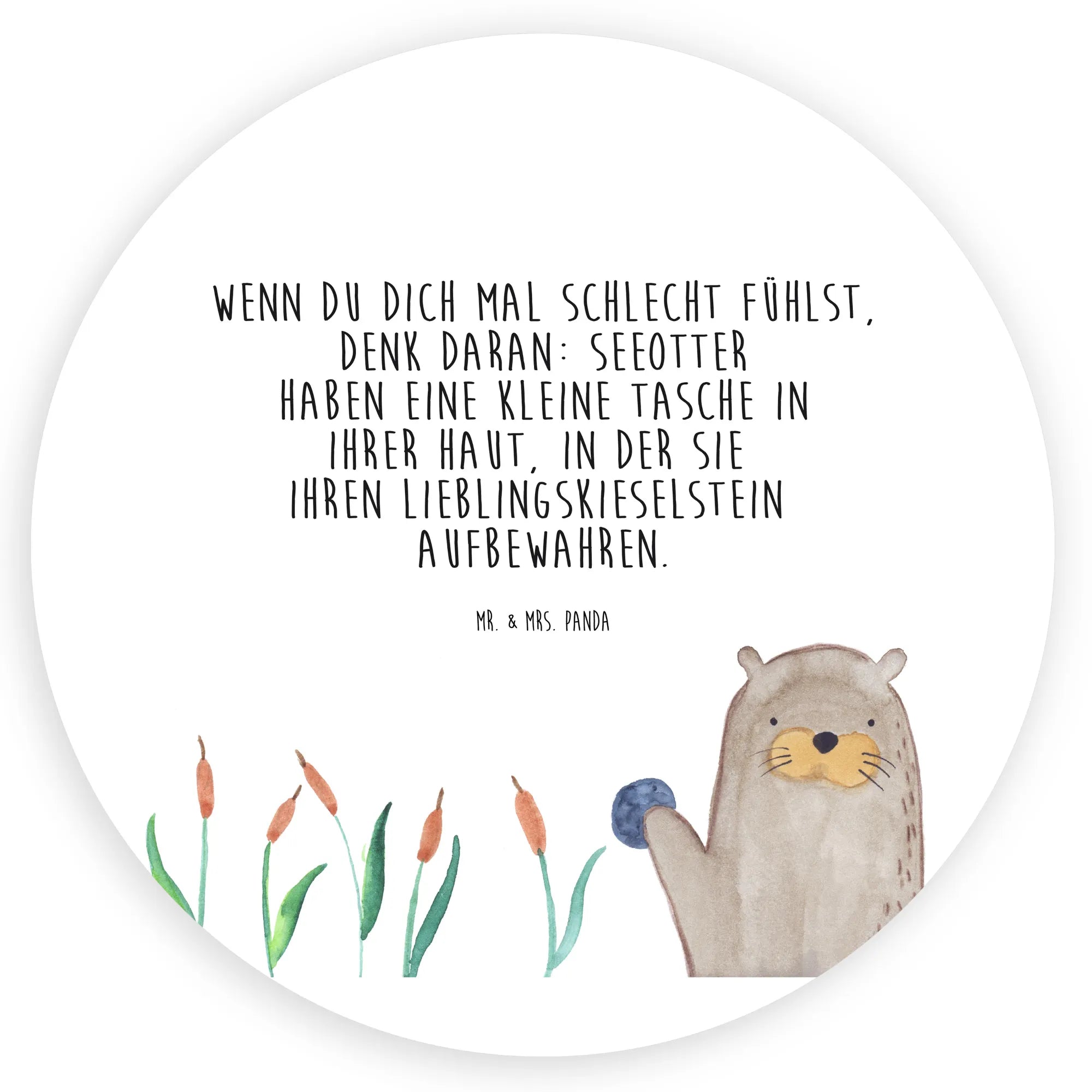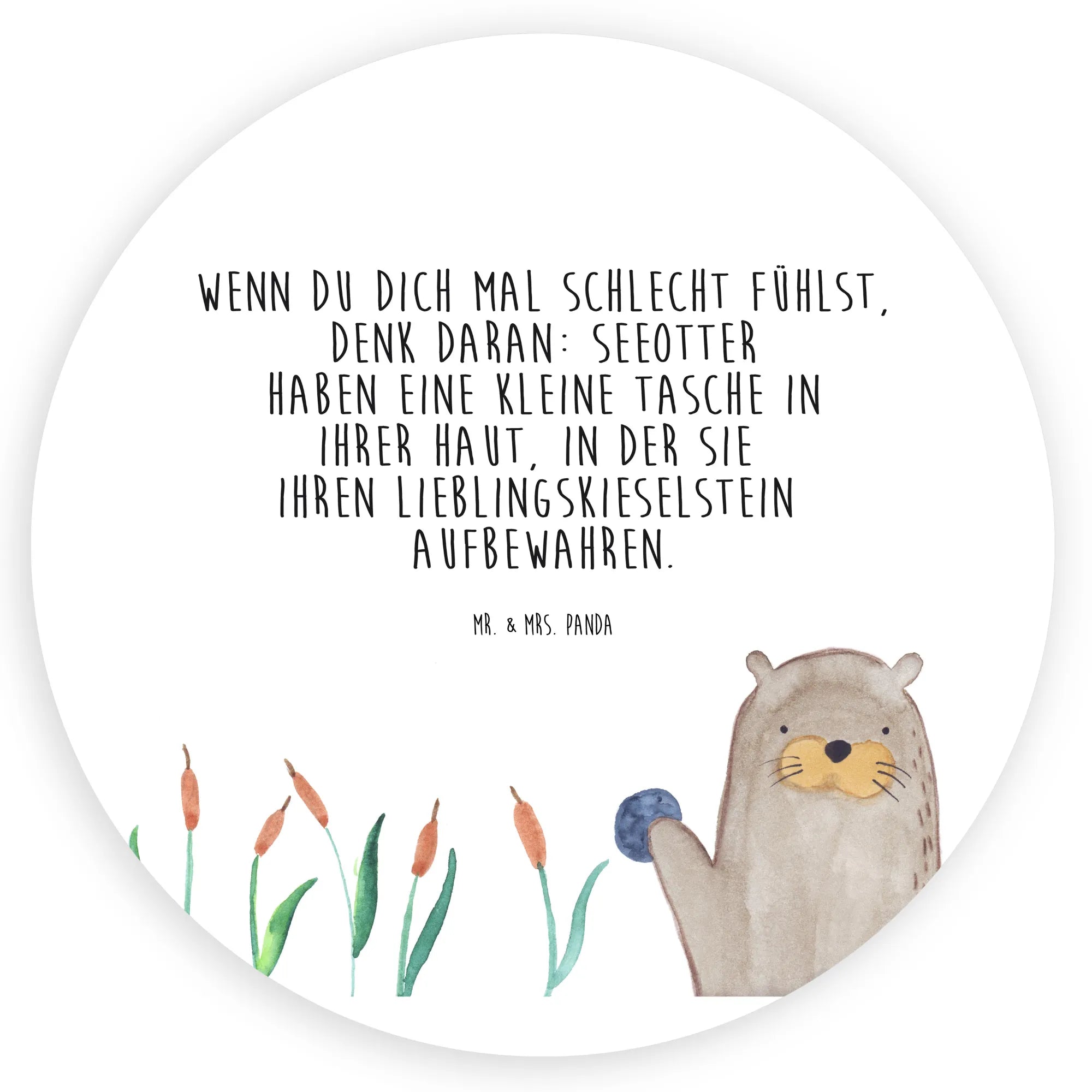 Rund Aufkleber Otter mit Stein - 80mm Rund Aufkleber - mit Spruch - Weiß