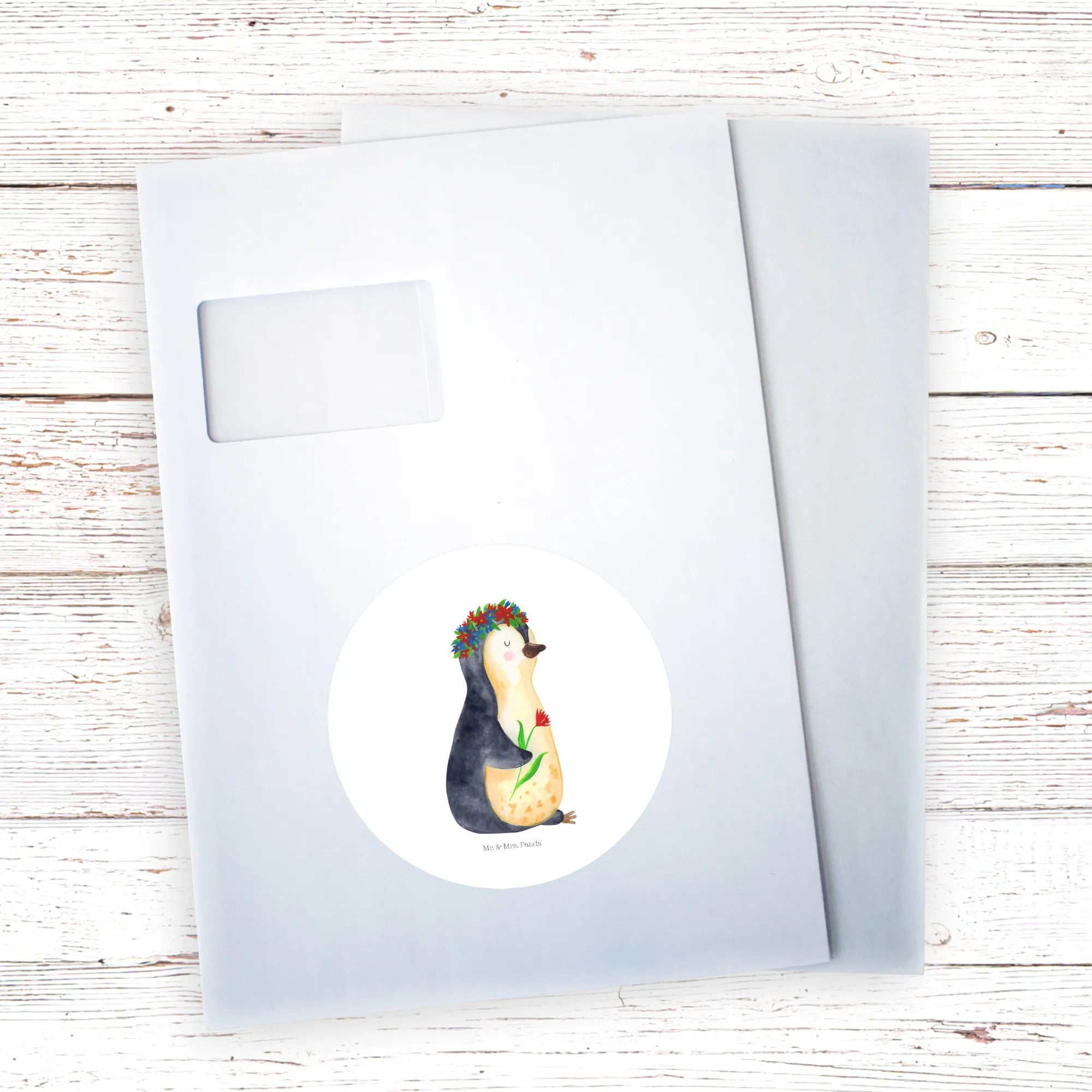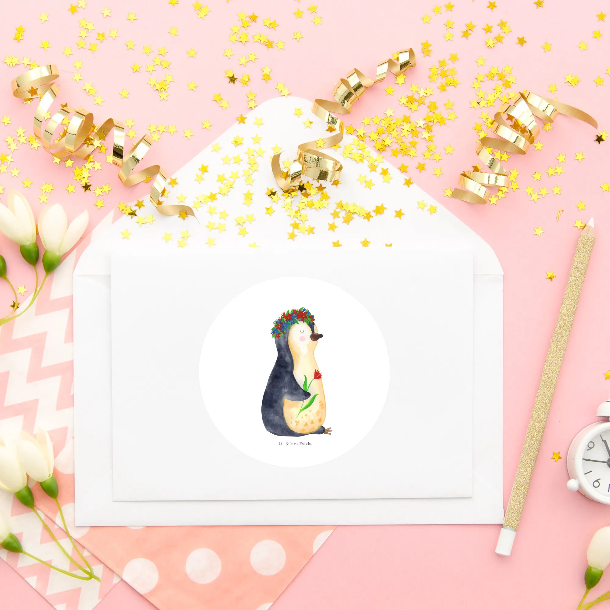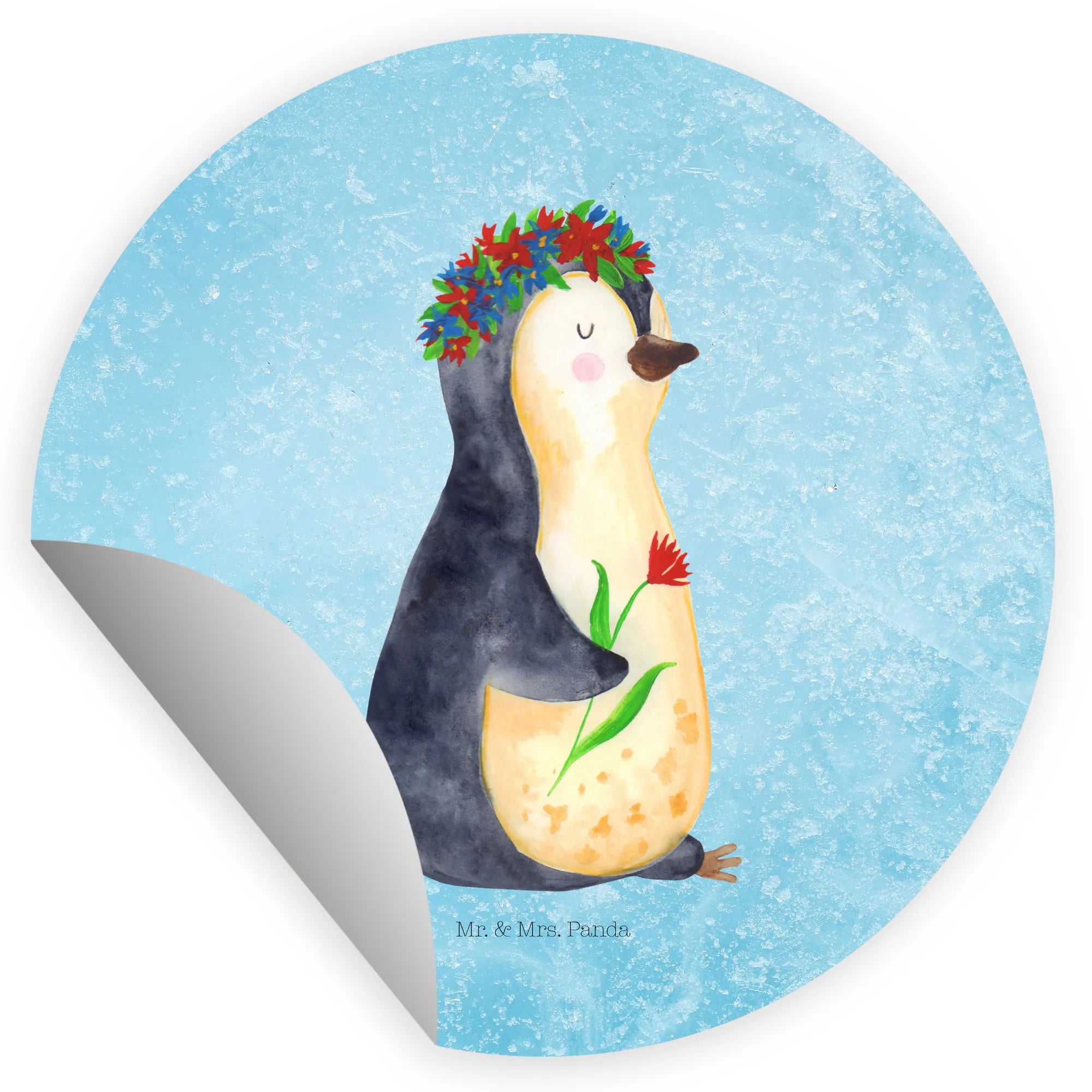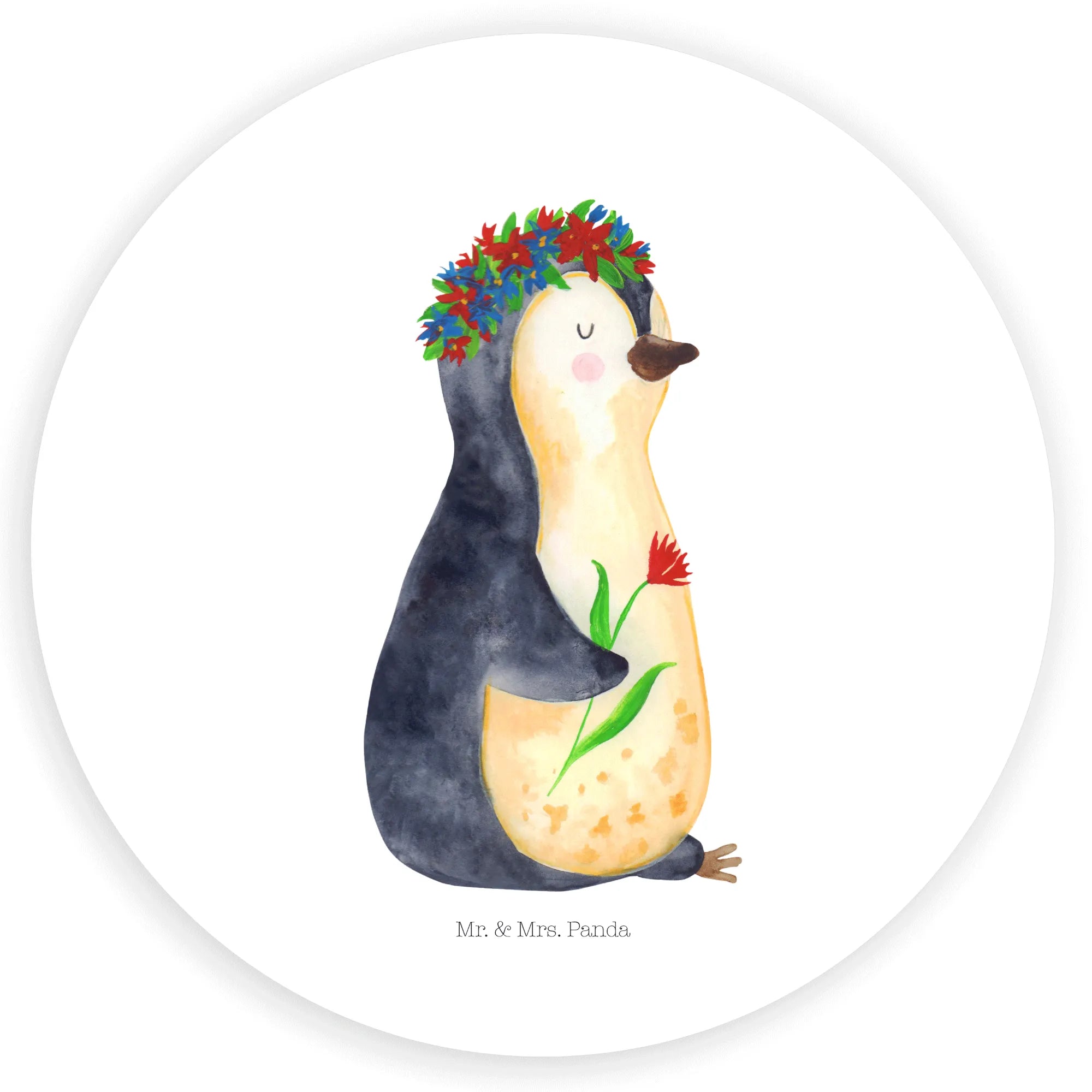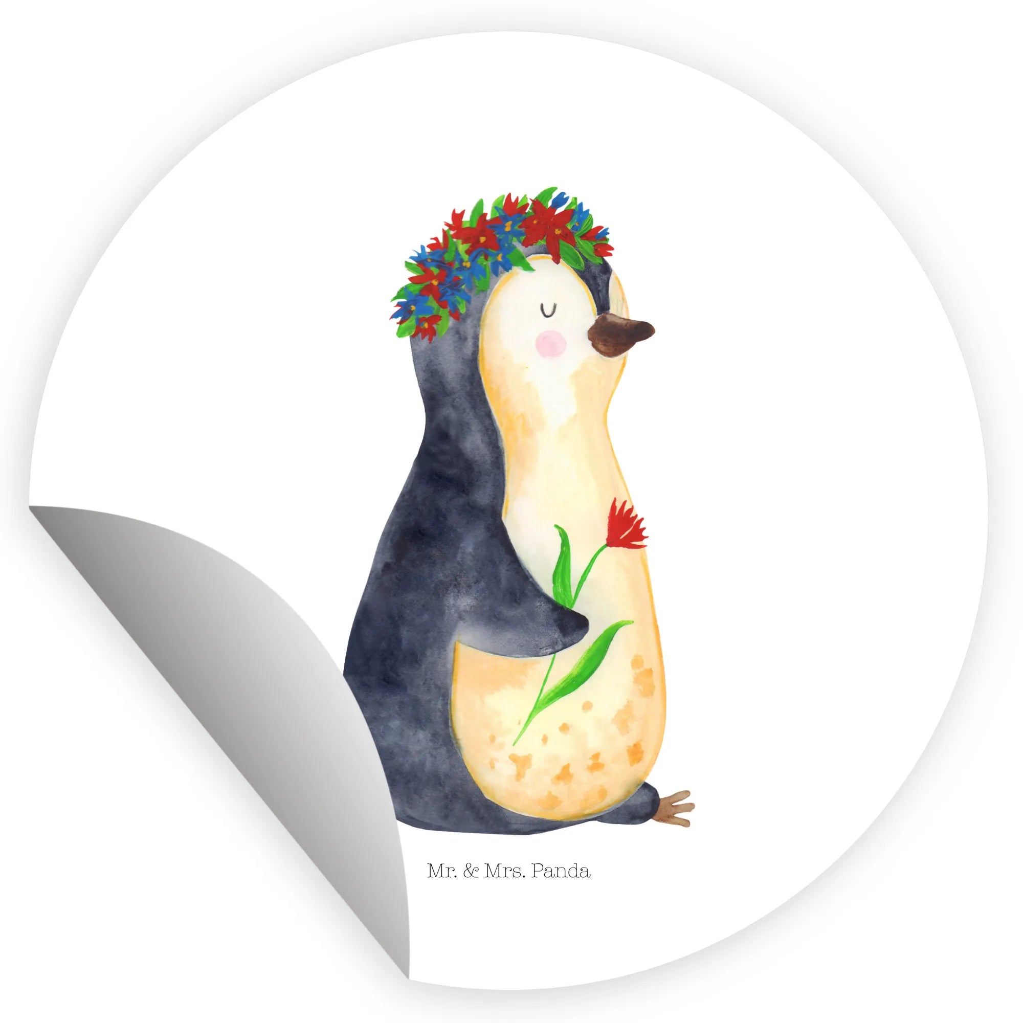 Freude schenkender Pinguin mit Blumenkranz – Mr. & Mrs. Panda Lebenslust