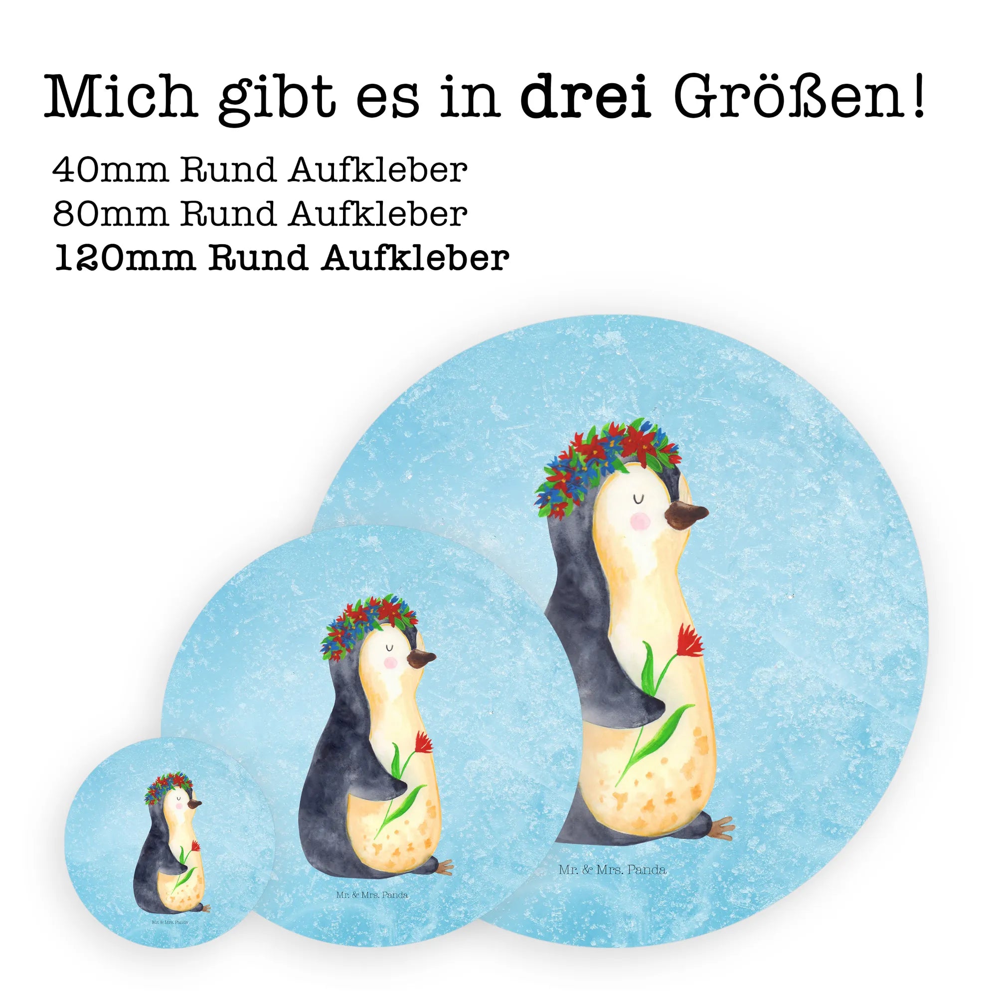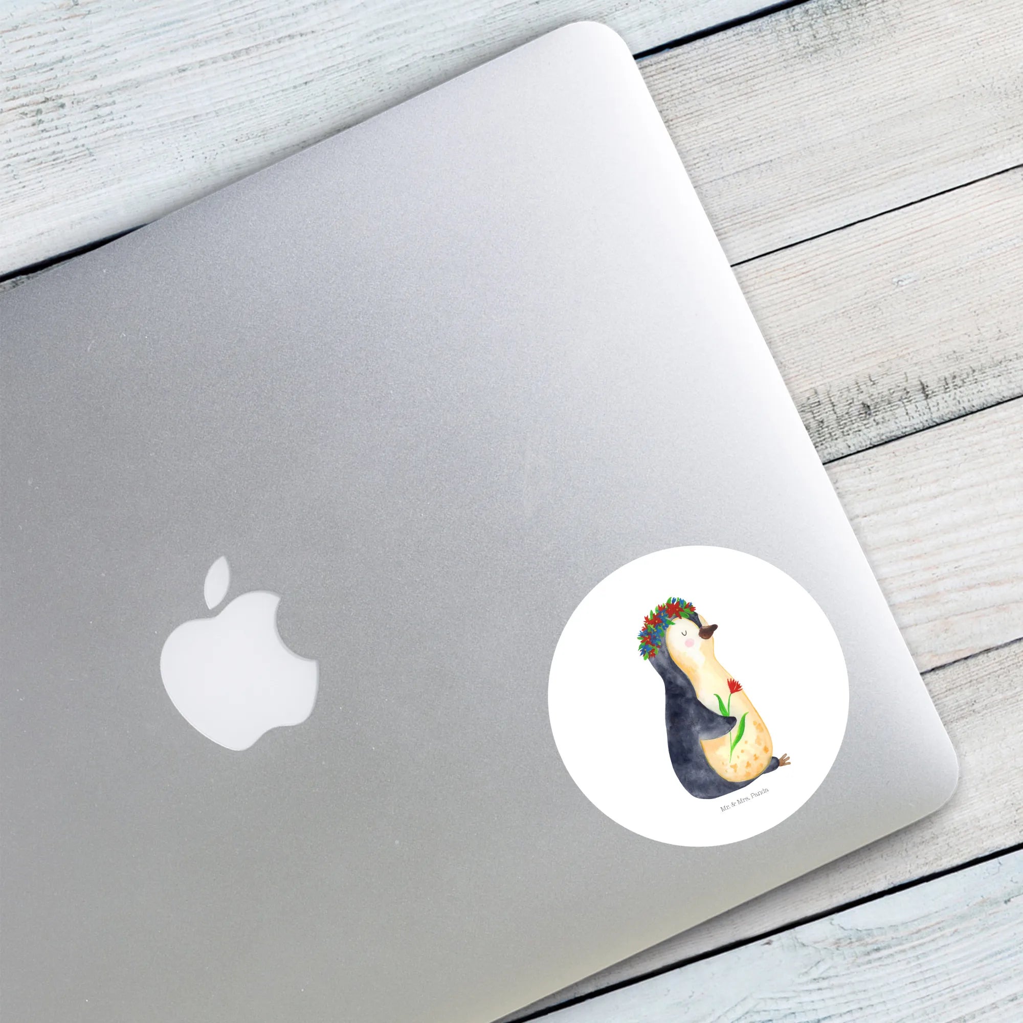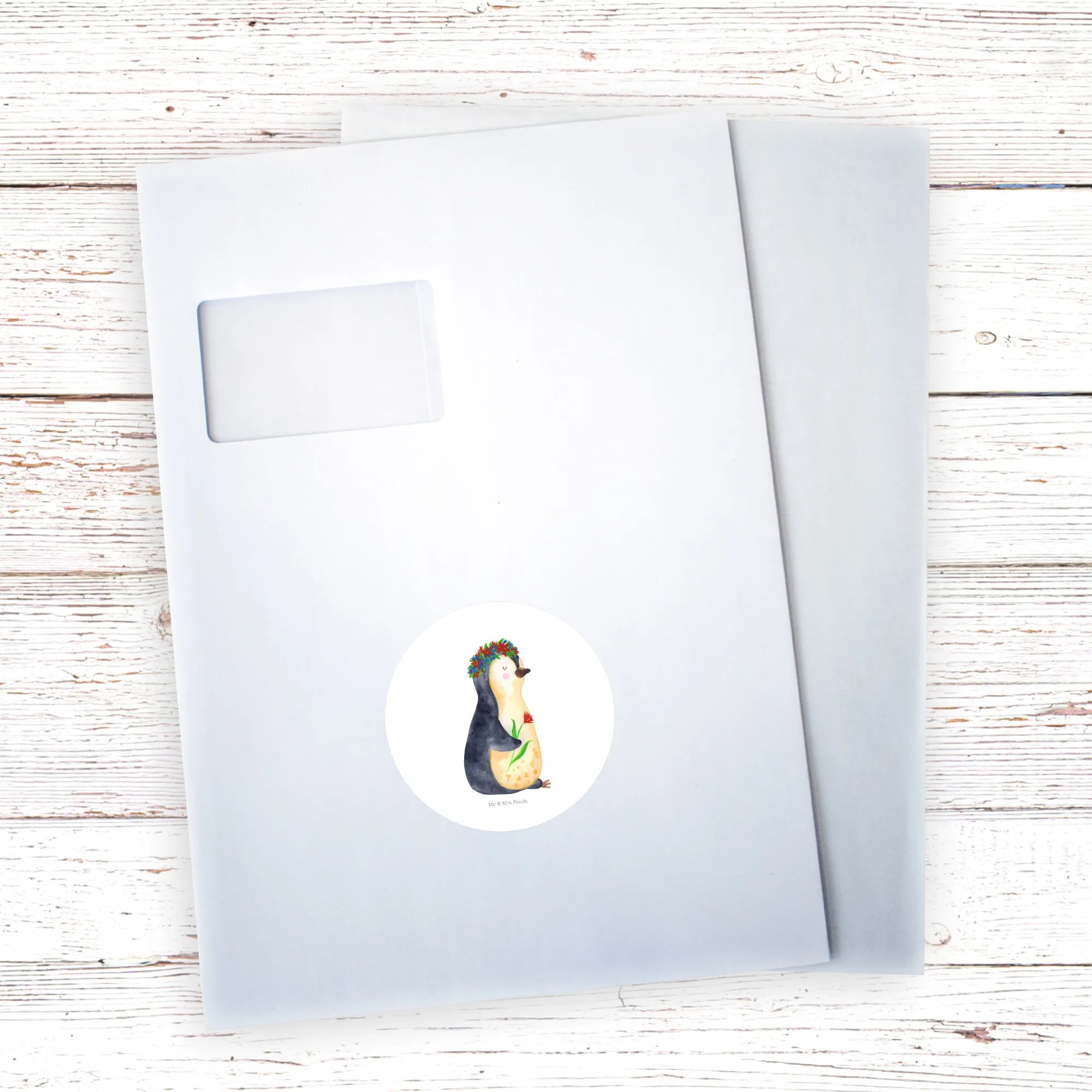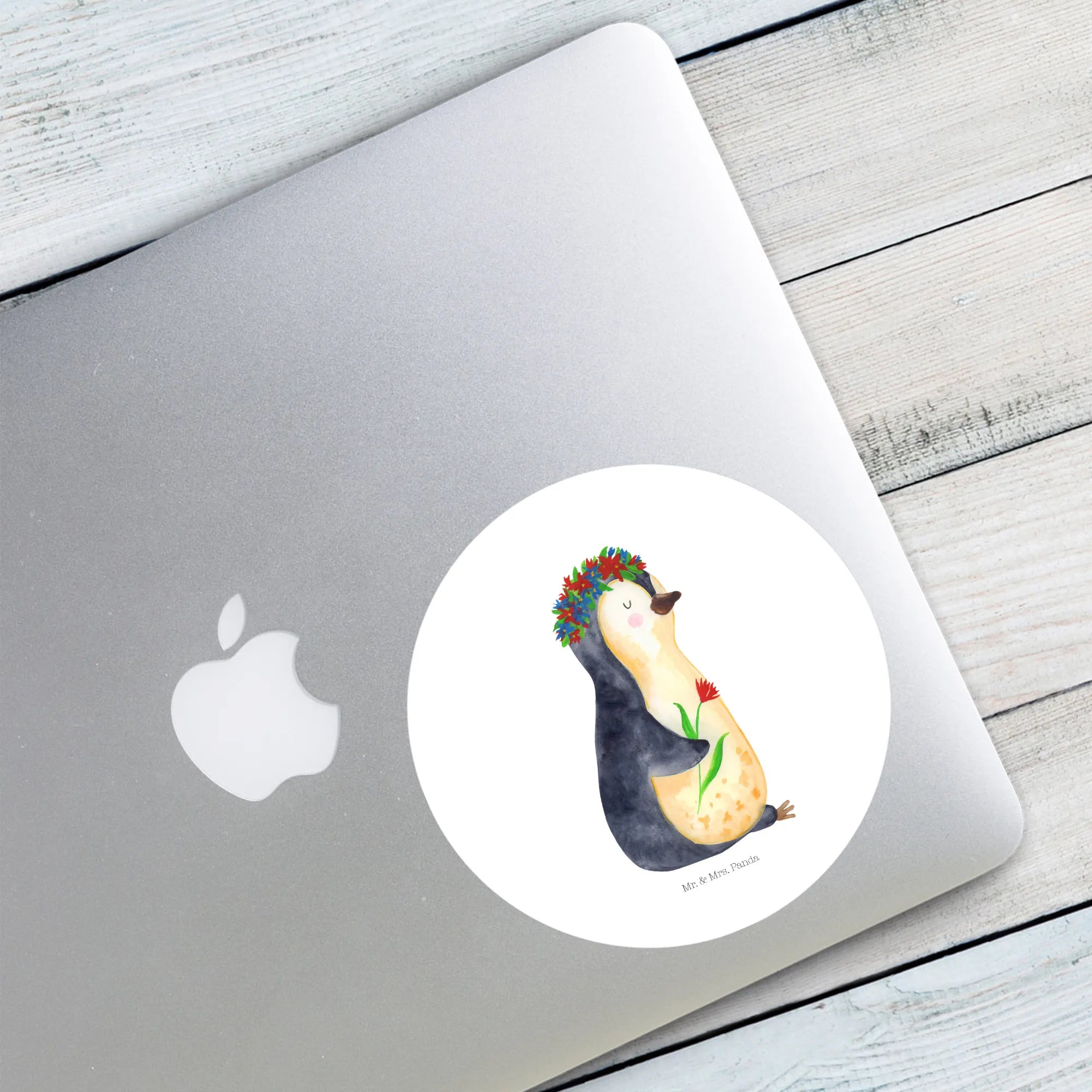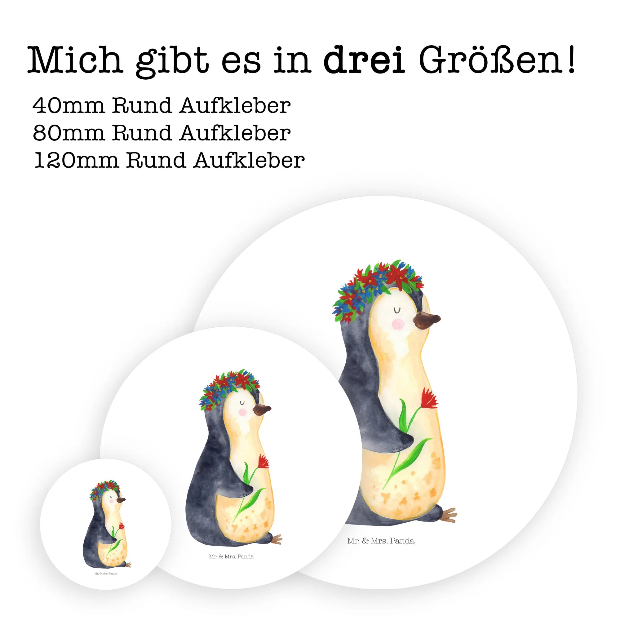 Freude schenkender Pinguin mit Blumenkranz – Mr. & Mrs. Panda Lebenslust