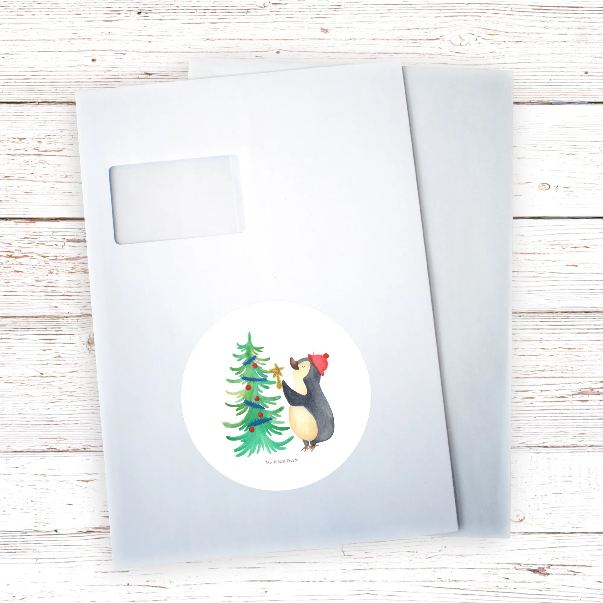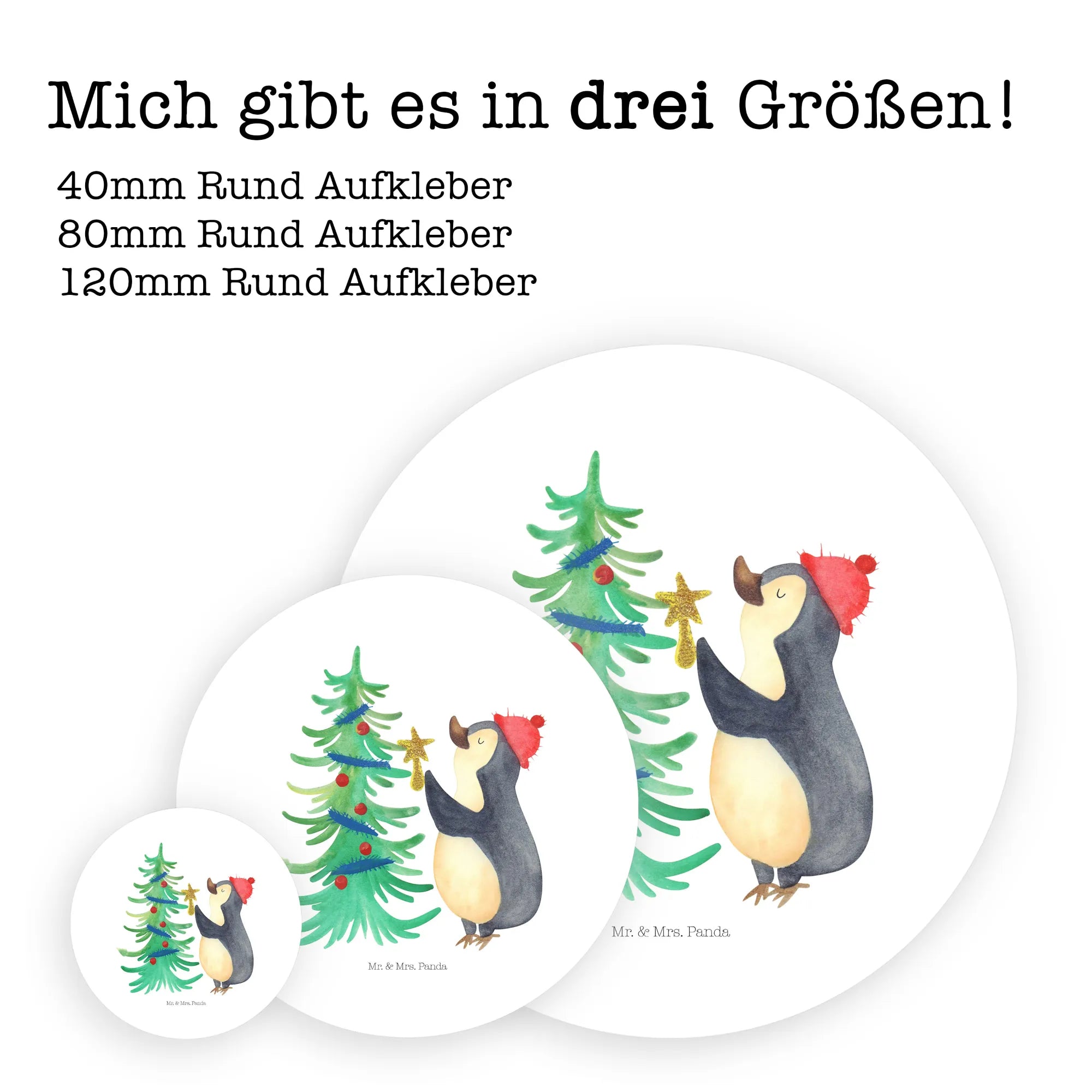 Rund Aufkleber Pinguin Weihnachtsbaum - 80mm Rund Aufkleber - mit Spruch - Weiß