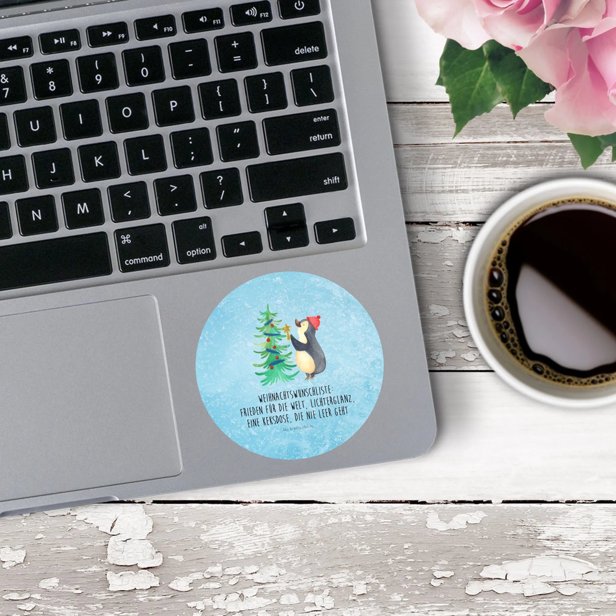 Schaffe ein fröhliches Ambiente mit unseren Winter und Weihnachtsmotiven! Platziere den Aufkleber auf einer Keksdose, um deinen süßen Vorrat zu kennzeichnen oder nutze ihn, um deine Weihnachtswunschliste zu dekorieren. Wenn du nach einem kreativen und herzerwärmenden Geschenk suchst, dann ist der 80mm Rund Aufkleber mit dem Pinguin und dem Weihnachtsbaum die ideale Wahl. Er ist ein kleiner, aber feiner Teil der Winter Kollektion von Mr. & Mrs. Panda, die dir hilft, die schönste Zeit im Jahr zu genießen! Voller Liebe und Kreativität gefertigt, wird dieser Aufkleber dein Herz erwärmen und ist eine zauberhafte Ergänzung für deine Weihnachtsdeko. Mache Weihnachten noch besonderer mit diesem ganz besonderen Aufkleber!