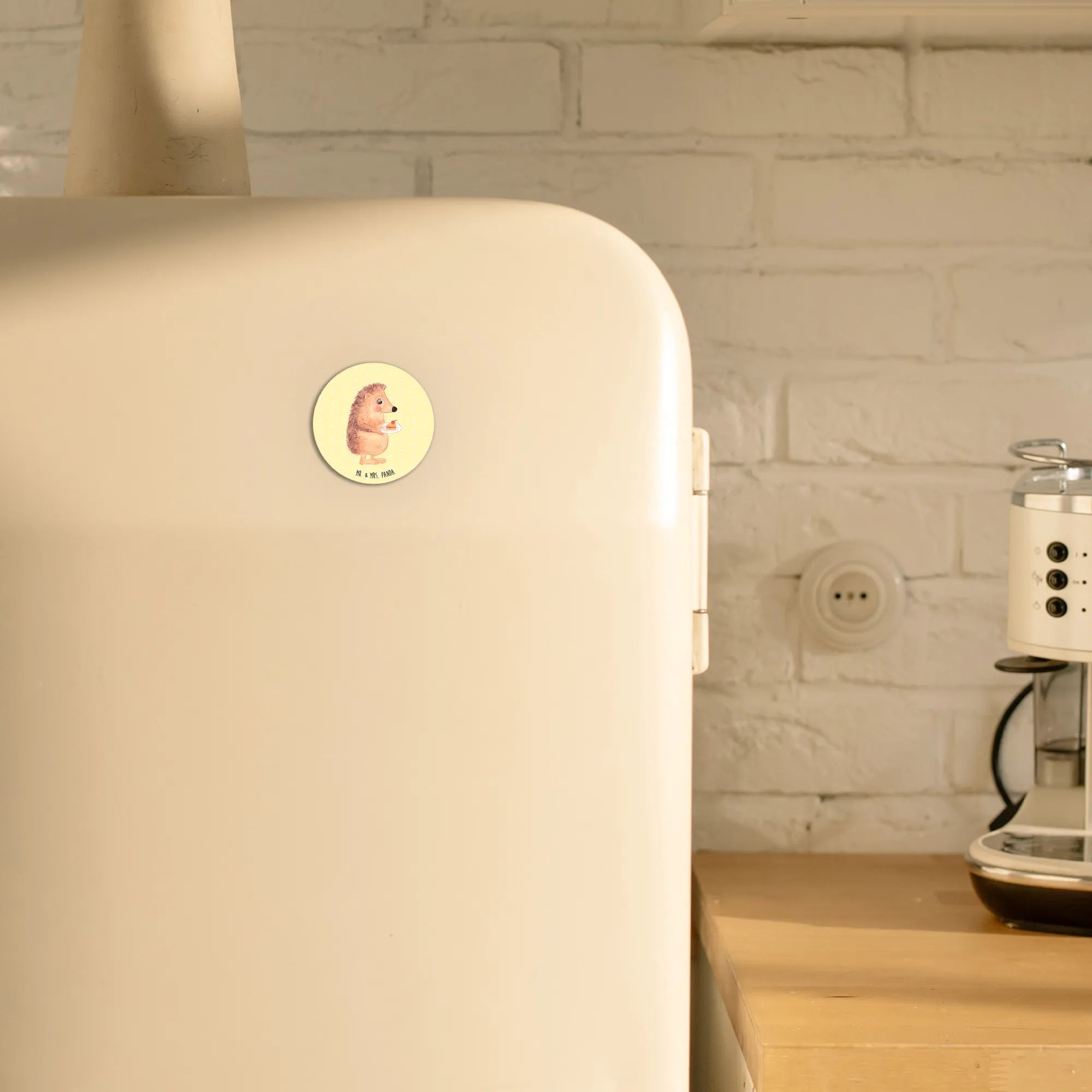 Entdecke jetzt unseren bunten Rund Magnet 'Igel mit Kuchenstück' aus der besonderen Small World Kollektion von Mr. & Mrs. Panda! Dieser magische Magnet ist nicht nur ein praktisches Haushaltsaccessoire, sondern auch ein wunderbares Geschenk für alle, die das Leben und leckere Kuchen lieben.