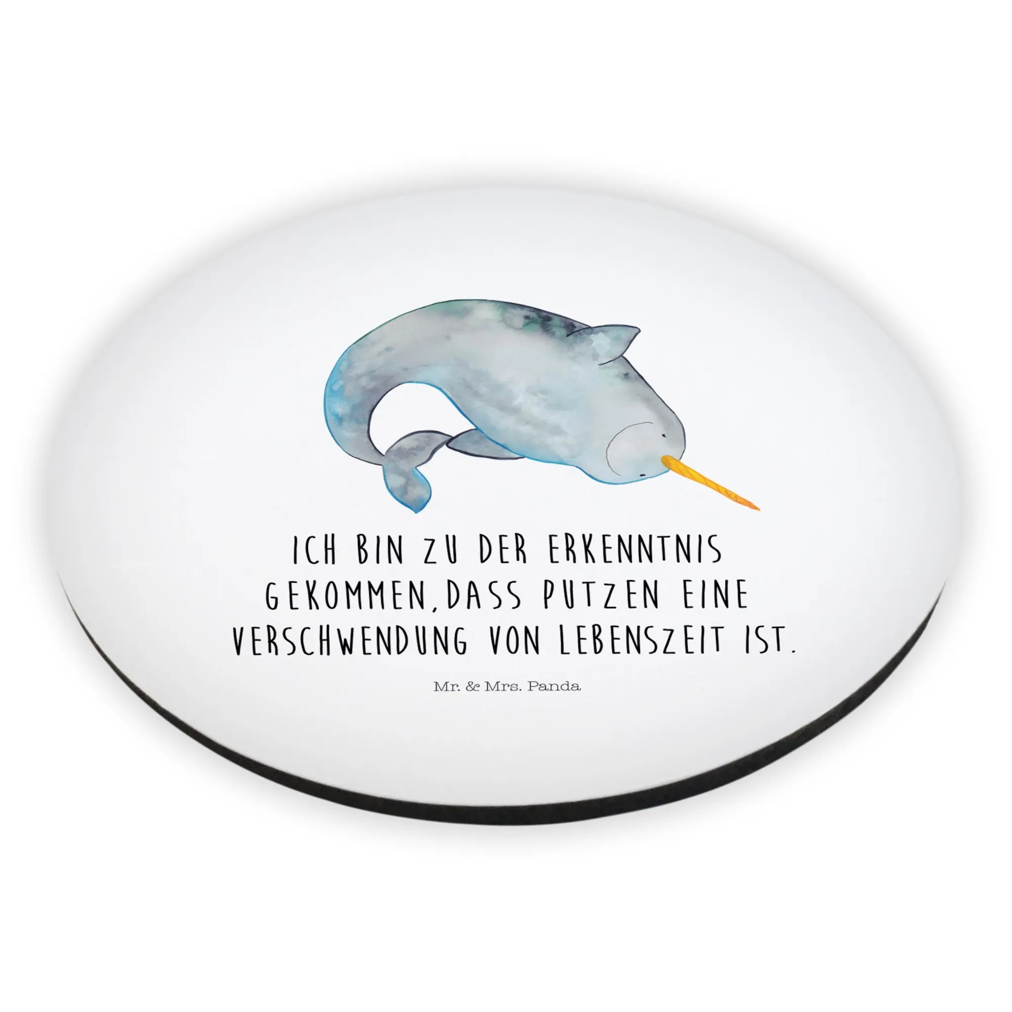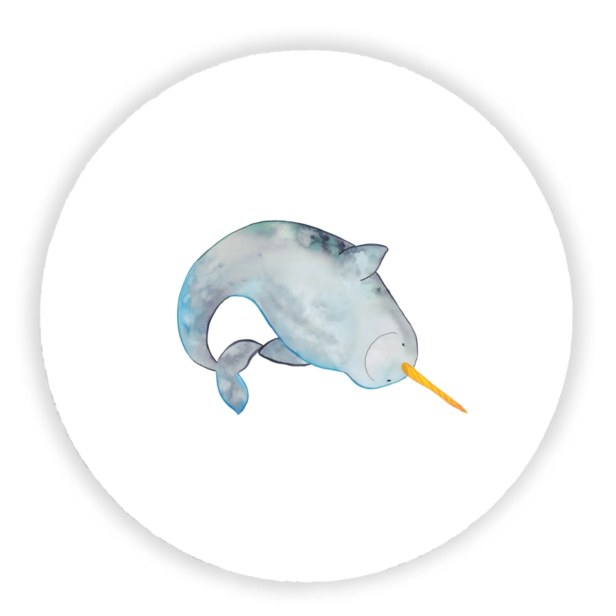 Möchtest Du Deinem Kühlschrank etwas fröhliche Farbe verleihen? Der Rund Magnet mit dem liebevoll gestalteten Narwal von Mr. & Mrs. Panda ist die perfekte Wahl!