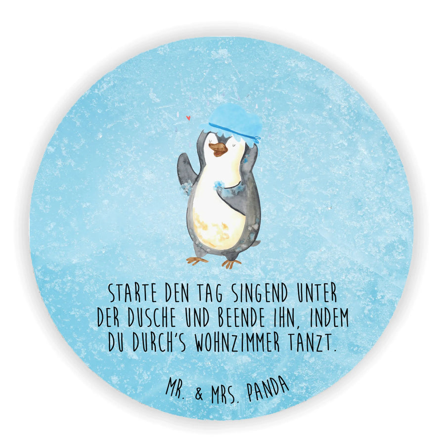 Rund Magnet Pinguin duscht - mit Spruch - Eisblau