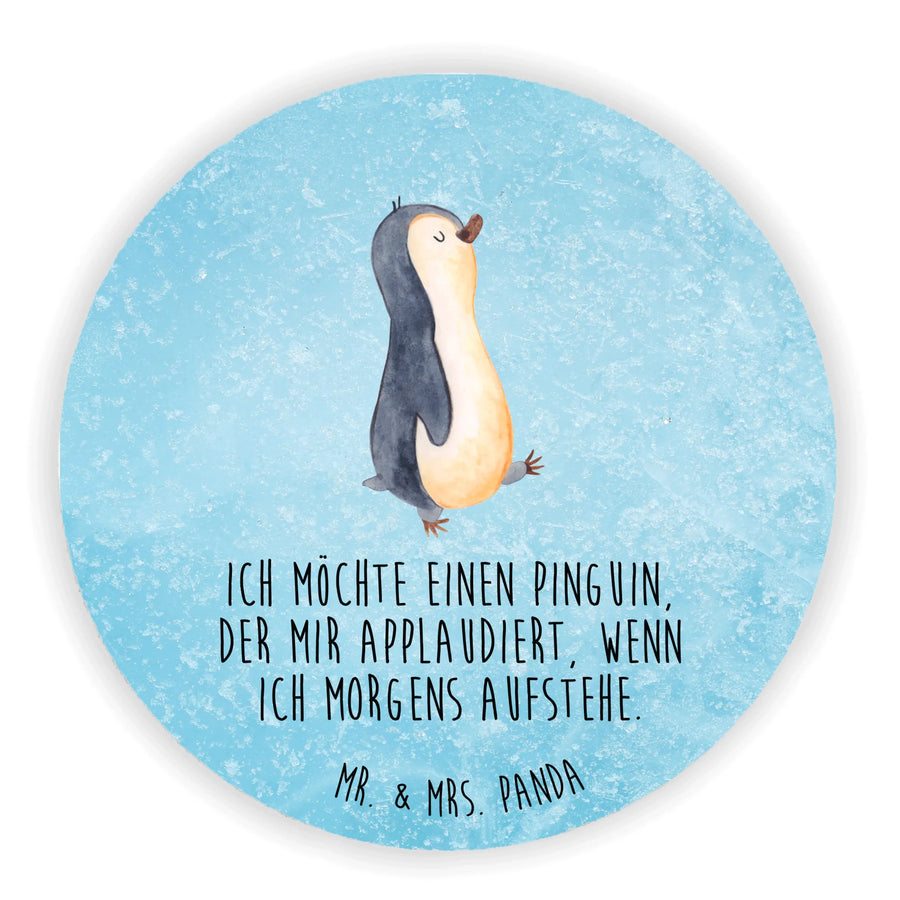 Rund Magnet Pinguin marschierend - mit Spruch - Eisblau