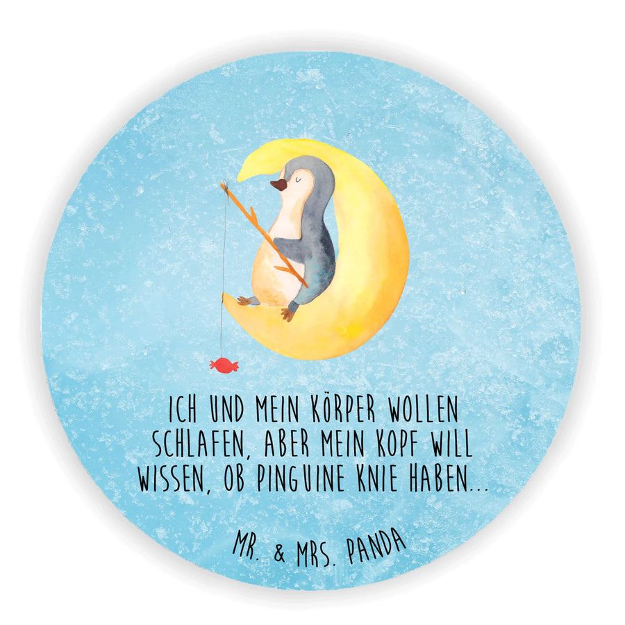 Rund Magnet Pinguin Mond - mit Spruch - Eisblau