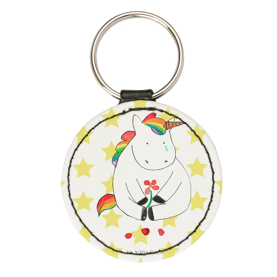 Rund Schlüsselanhänger Einhorn Traurig - Weiß