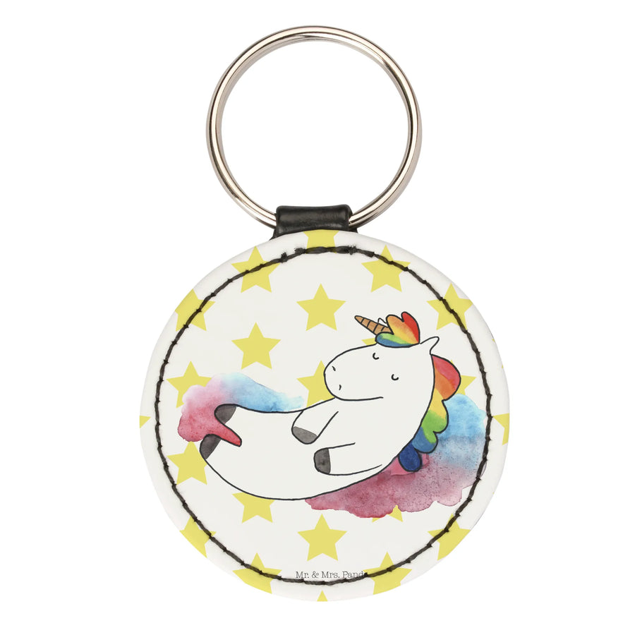 Rund Schlüsselanhänger Einhorn Wolke 7 - Weiß