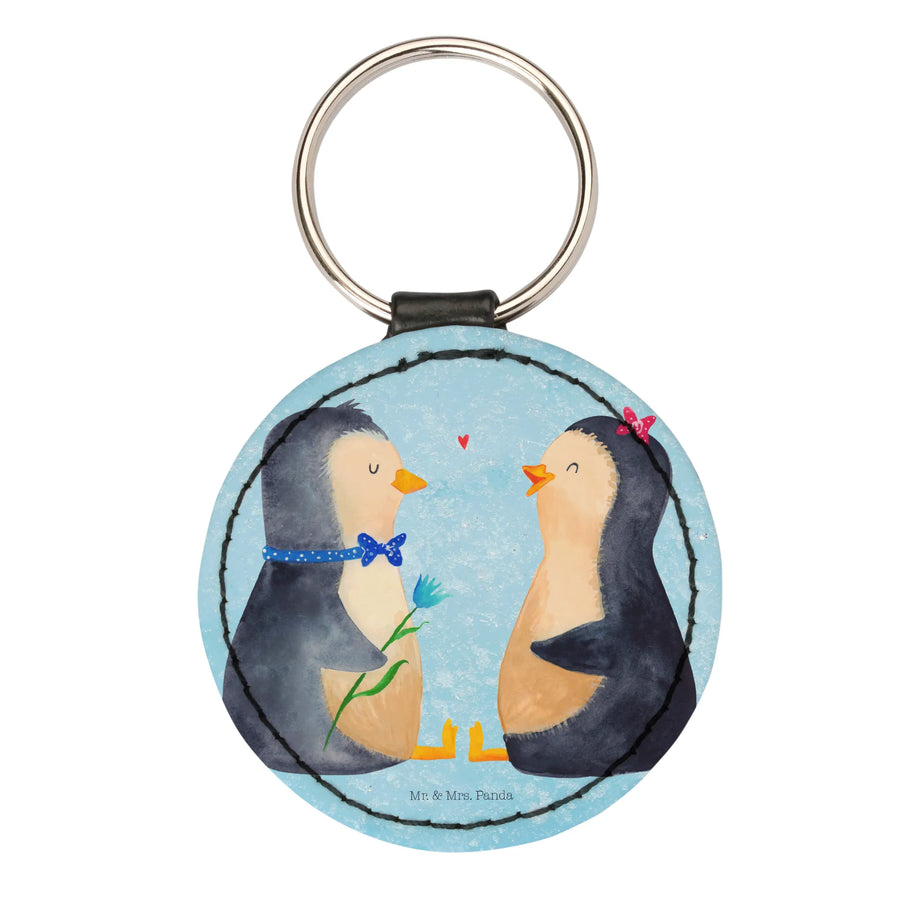 Rund Schlüsselanhänger Pinguin Pärchen - Eisblau