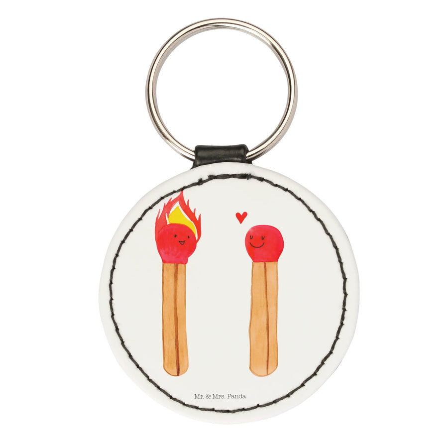 Suchst du das perfekte Geschenk für jemanden, den du liebst? Unser Rund Schlüsselanhänger mit dem liebevollen Motiv von Streichhölzern ist genau das richtige! Mit seinen fröhlichen Farben und dem herzlichen Design bringt dieser Schlüsselanhänger nicht nur Freude, sondern auch eine liebevolle Botschaft mit sich. Das linke Streichholz glänzt mit einem strahlenden roten Kopf und gelben Flammen, während das rechte ebenfalls rot ist, aber nicht brennt. Zwischen diesen beiden brennt eine ganz besondere Verbindung, die durch ein kleines Herz symbolisiert wird.