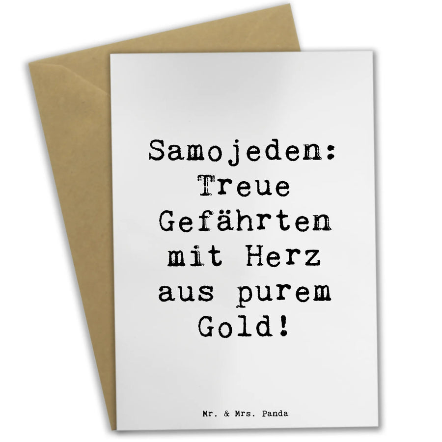 Entdecke die bezaubernde Grußkarte mit dem niedlichen Samojeden-Motiv von Mr. & Mrs. Panda! Diese einzigartige Karte ist nicht nur einfach eine Karte, sondern ein Herzstück für alle Hundefans und Liebhaber dieser treuen Gefährten. Mit dem liebevollen Spruch "Samojeden: Treue Gefährten mit Herz aus purem Gold!" ist sie perfekt, um Deine Empathie und Freude auszudrücken.