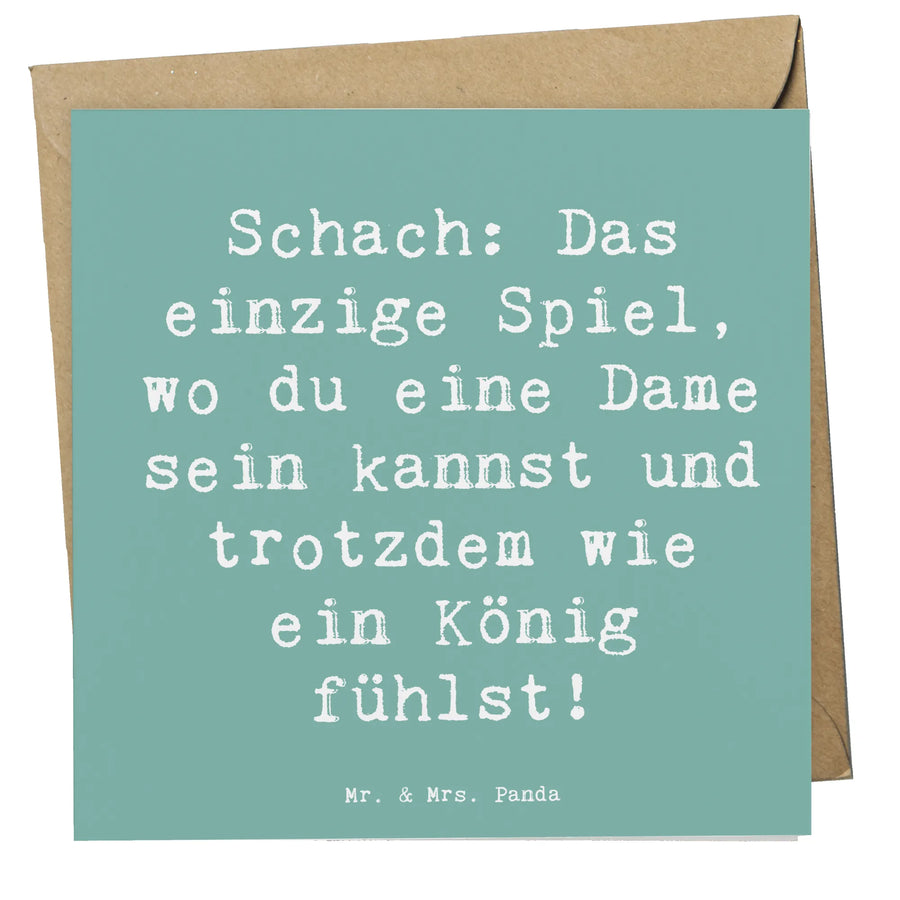 Die Deluxe Karte Schach von Mr. & Mrs. Panda ist das perfekte Geschenk für alle Schachliebhaber und Sportenthusiasten! Diese wunderschöne, hochwertige quadratische Karte ist nicht nur ein Blickfang, sondern auch ein Ausdruck von kreativer Leidenschaft. Mit dem Slogan "Schach: Das einzige Spiel, wo du eine Dame sein kannst und trotzdem wie ein König fühlst!" wird jeder Empfänger sofort in den Bann des königlichen Spiels gezogen.