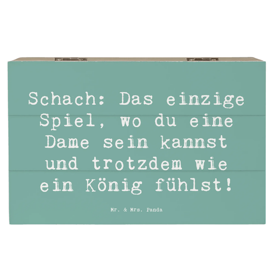 Mit einem charmanten Spruch: 'Schach: Das einzige Spiel, wo du eine Dame sein kannst und trotzdem wie ein König fühlst!', bringt diese Kiste nicht nur Freude, sondern auch eine persönliche Note in jede Sammlung.