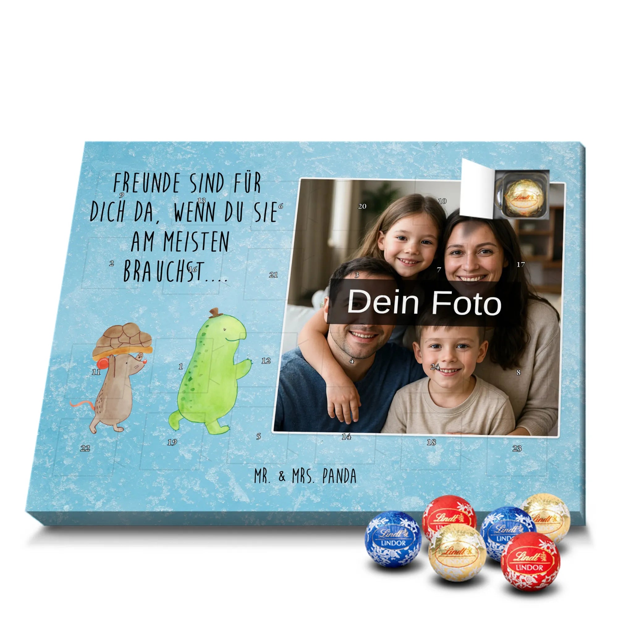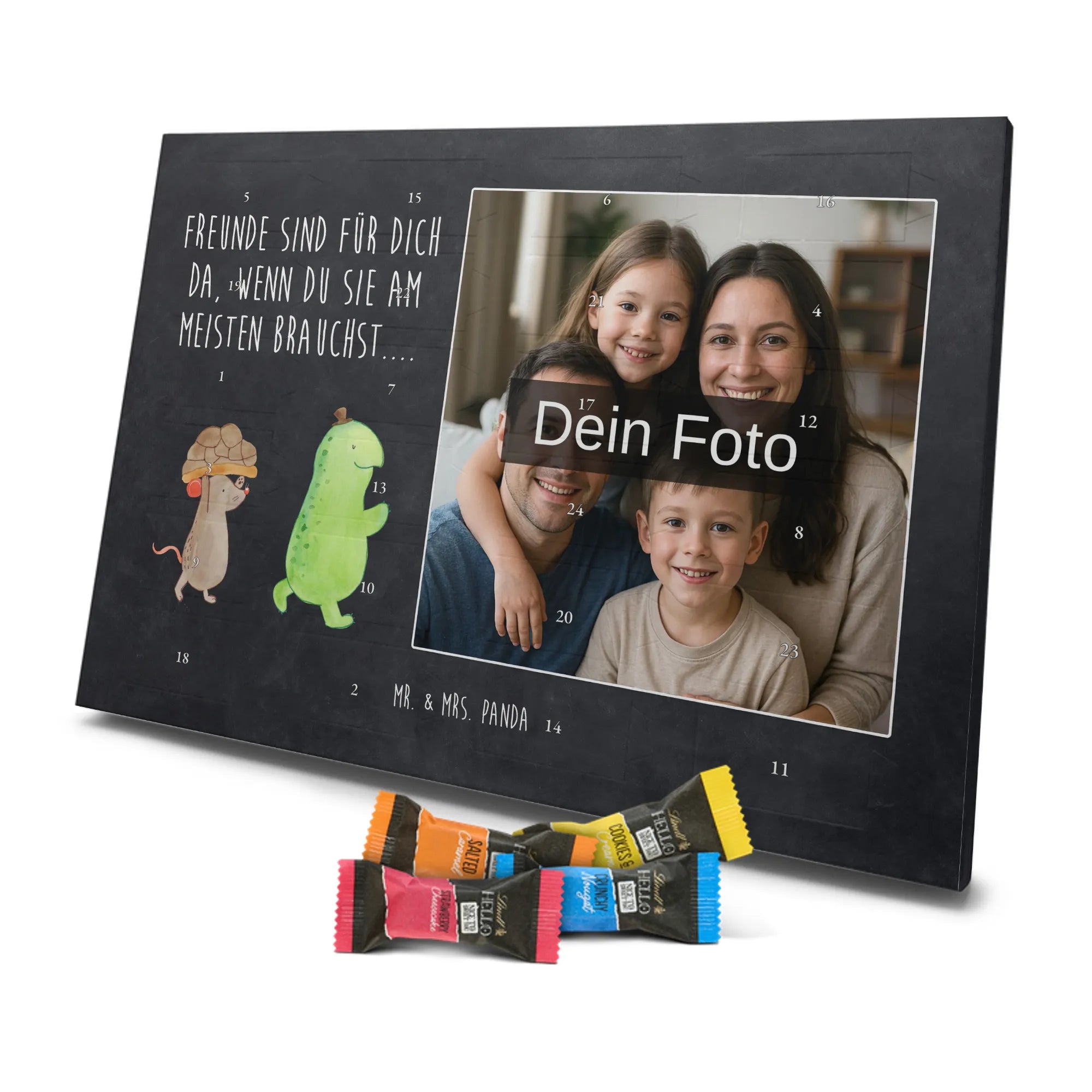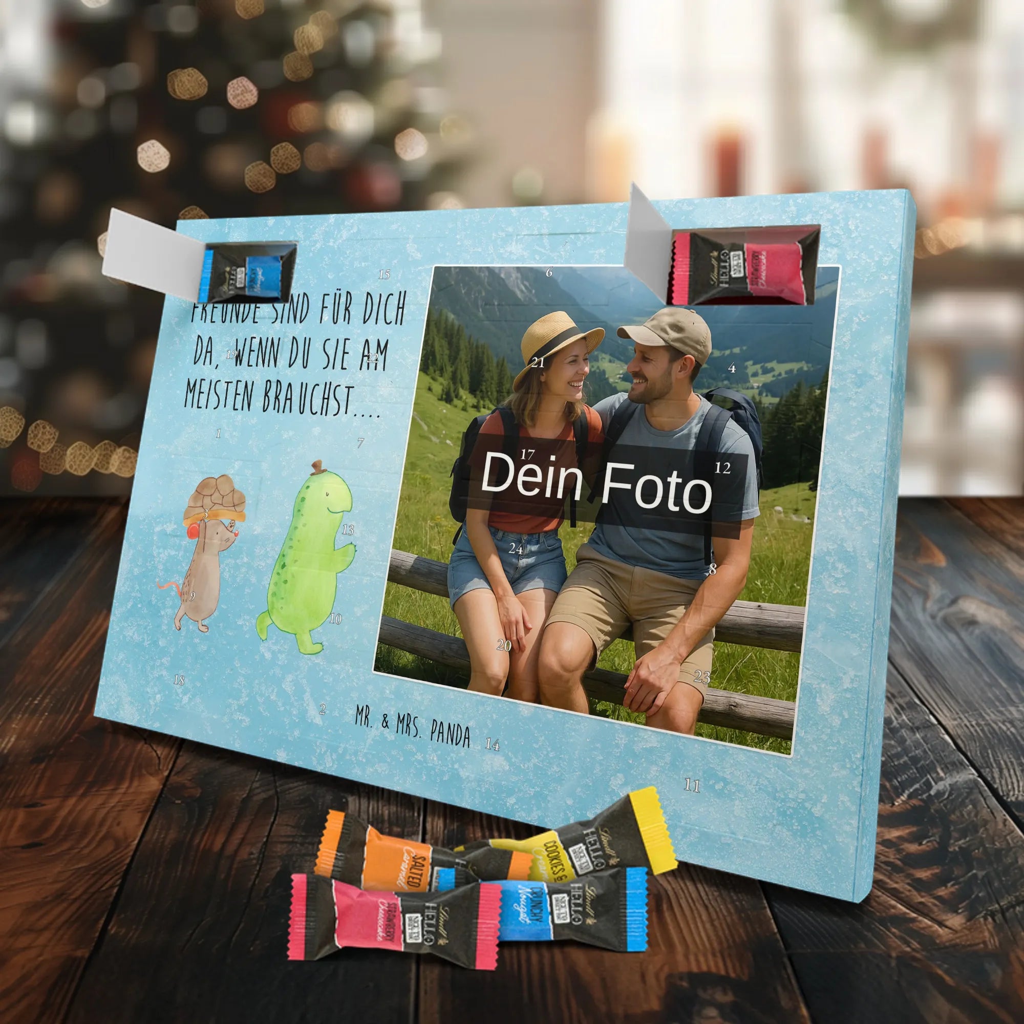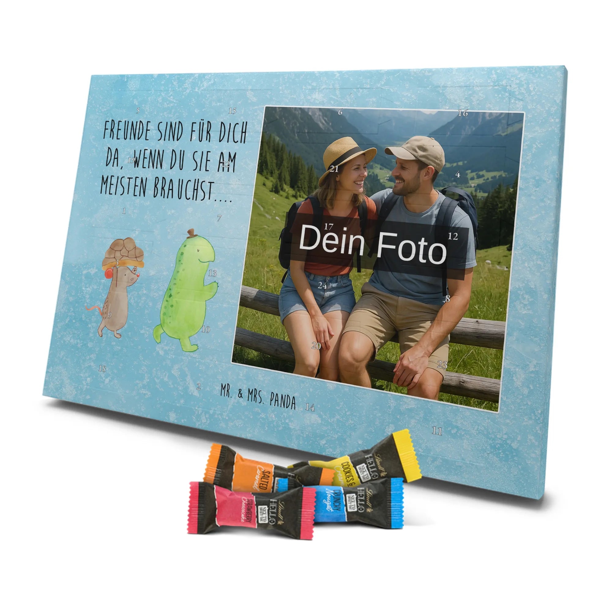 🐼 PERSONALISIERTES ADVENTS-SCHOKOKALENDER: Foto, Mr. & Mrs. Panda Motive & Lindt Hello Minis vereint.