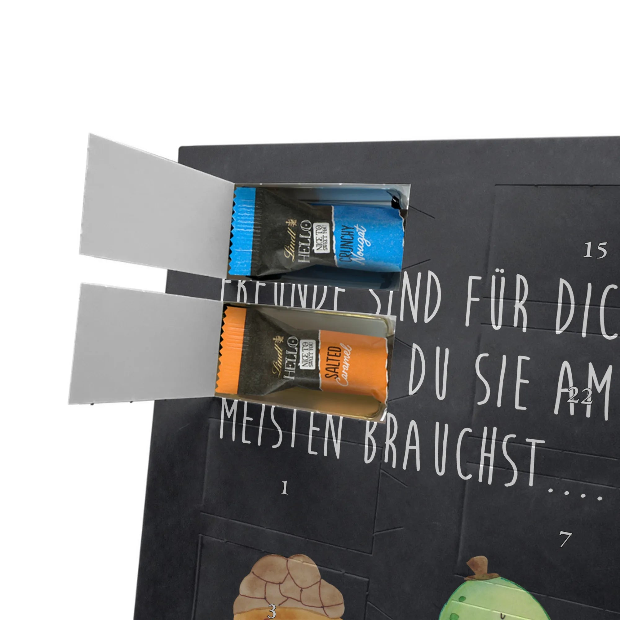 Entdecke unseren charmanten Personalisierter Schoko-Foto Adventskalender von Mr. & Mrs. Panda – ein liebevolles Geschenk für Freunde, Familie oder dich selbst. Aufdrucke mit süßen Motiven und herzlichen Sprüchen begleiten dein persönliches Foto, das du individuell hochlädst. Achte bitte auf eine ausreichende Auflösung des Bildes und einen passenden Bildausschnitt, damit das Druckbild klar bleibt. Wir weisen darauf hin, dass Fotos nicht nachbearbeitet oder zugeschnitten werden; achte daher auf Bildrechte und Zustimmung der abgebildeten Personen. Die Verarbeitung überzeugt durch eine seidenmatte Oberflächenveredelung und bedruckte Seitenflächen; dadurch wirkt der Kalender sehr hochwertig. Der Kalender ist vielseitig: Du kannst ihn sowohl aufstellen als auch aufhängen. Maße: 233 mm x 178 mm x 24 mm. Gefüllt mit Lindt Lindor Markenschokolade – 24 einzeln verpackte Markenschokoladen Kugeln in den Geschmacksrichtungen Vollmilch, Feinherb und Weiße Schokolade. Zutaten und Allergene sind auf der Verpackung angegeben; es kann Spuren von Haselnüssen und Mandeln geben. Hinweis: Personalisierte Foto-Artikel sind vom Umtausch ausgeschlossen.