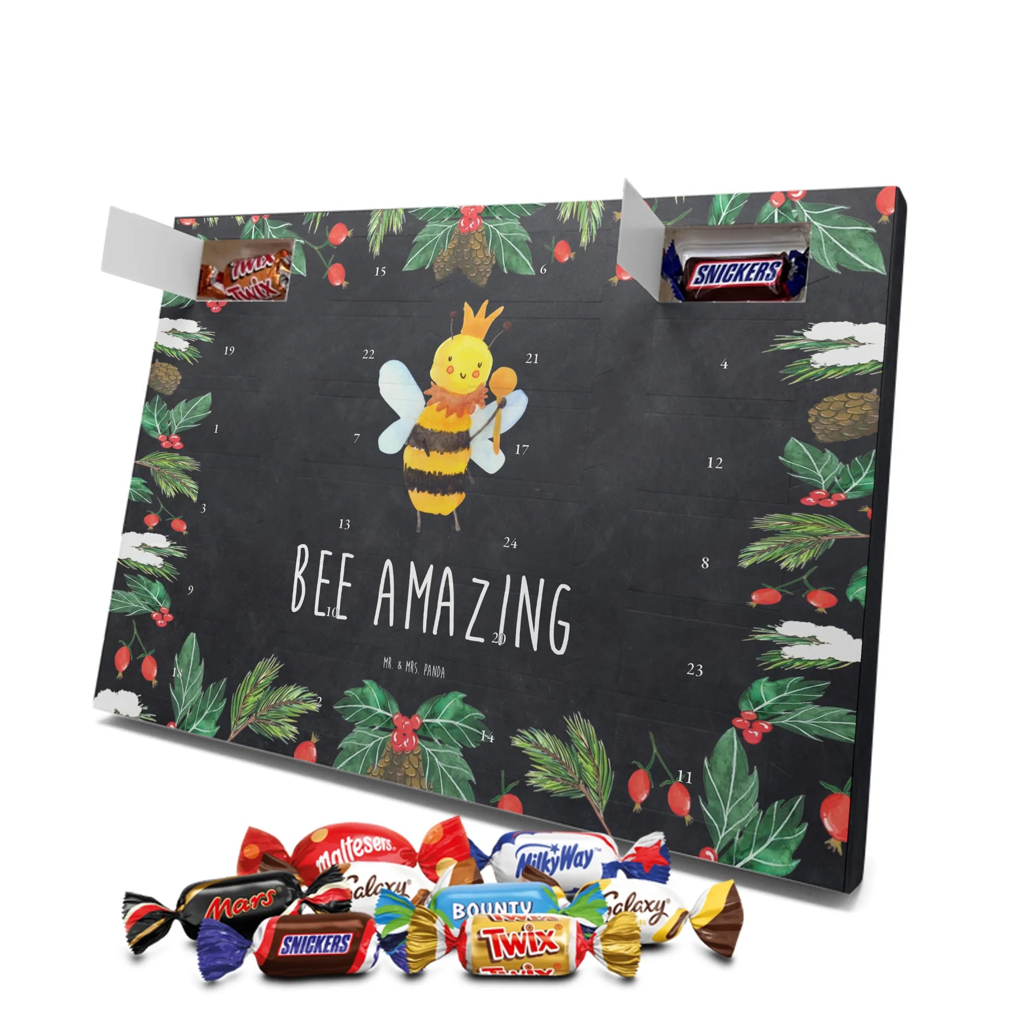 Mr. & Mrs. Panda Schoko Adventskalender „Biene König“ – der liebevoll illustrierte Weihnachtskalender aus der Bienen Kollektion, perfekt für alle, die Schokolade und Design lieben. Das Motiv zeigt eine niedliche Biene mit Krone und Zepter und den fröhlichen Spruch „Bee amazing“. Die Aquarell-Illustration von Mrs. Panda macht jeden Dezembertag zu etwas Besonderem.