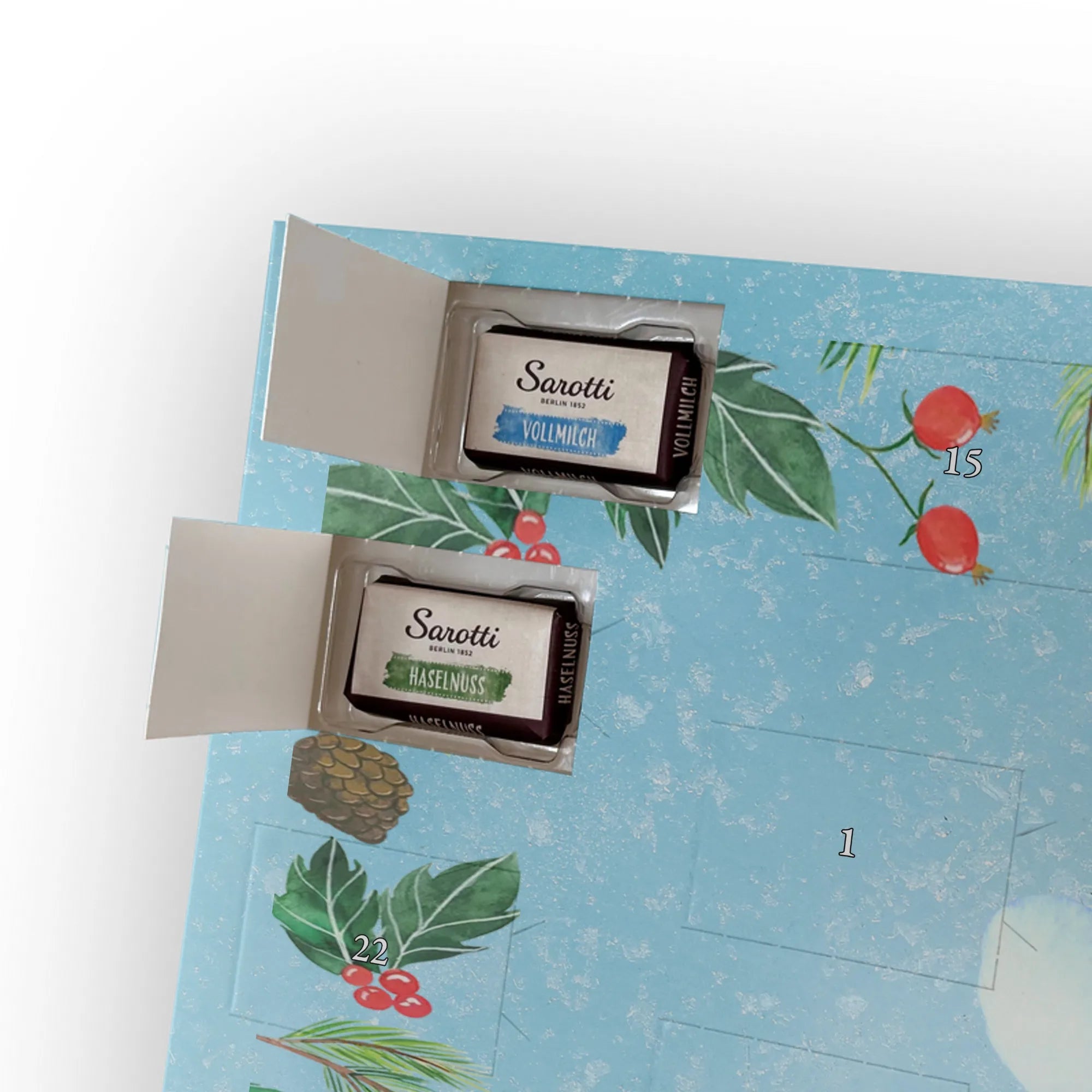 Mach die Adventszeit süßer: Entdecke unseren bedruckten Schokoladen Adventskalender von Mr. & Mrs. Panda und verschenke täglich Freude!