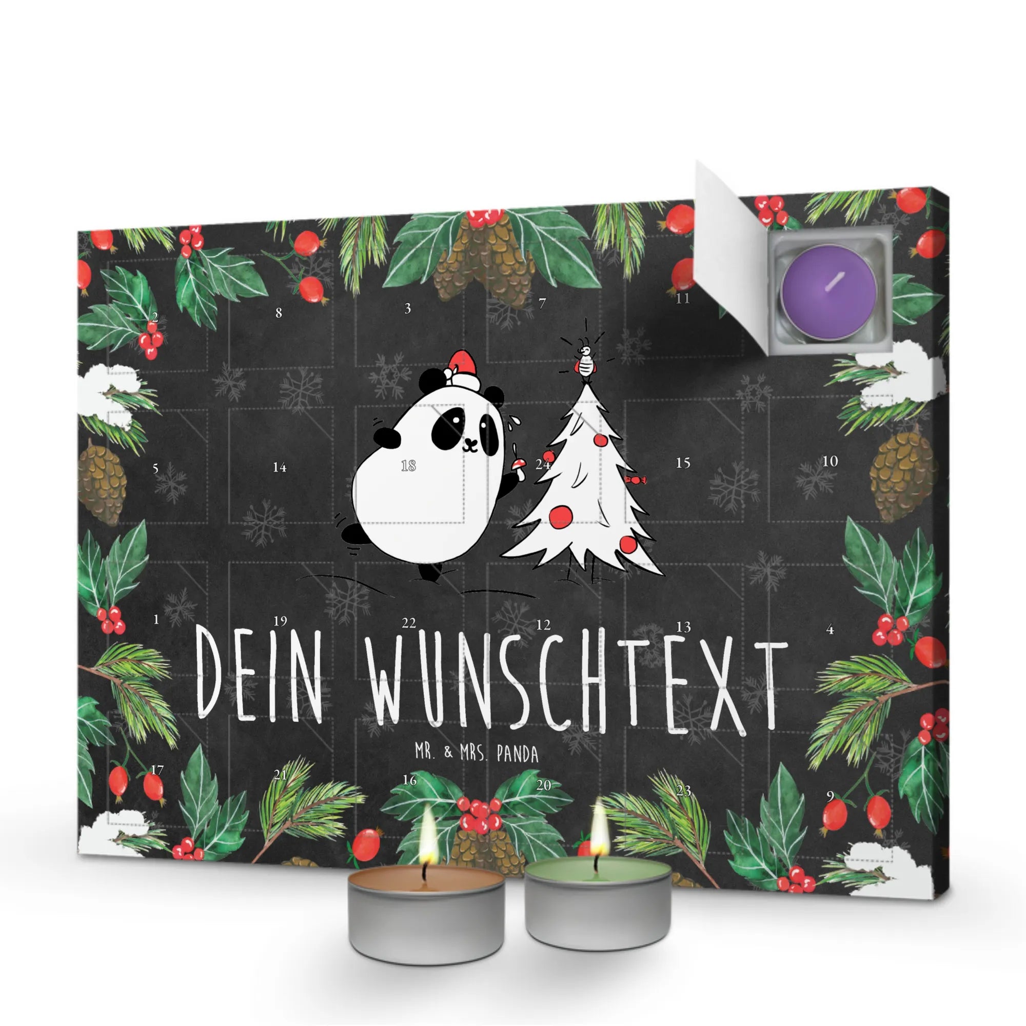 Erlebe Duft und Design: Bestell jetzt den personalisierten Duftkerzen Adventskalender und genieße 24 Tage voller Duftüberraschungen von Mr. & Mrs. Panda.