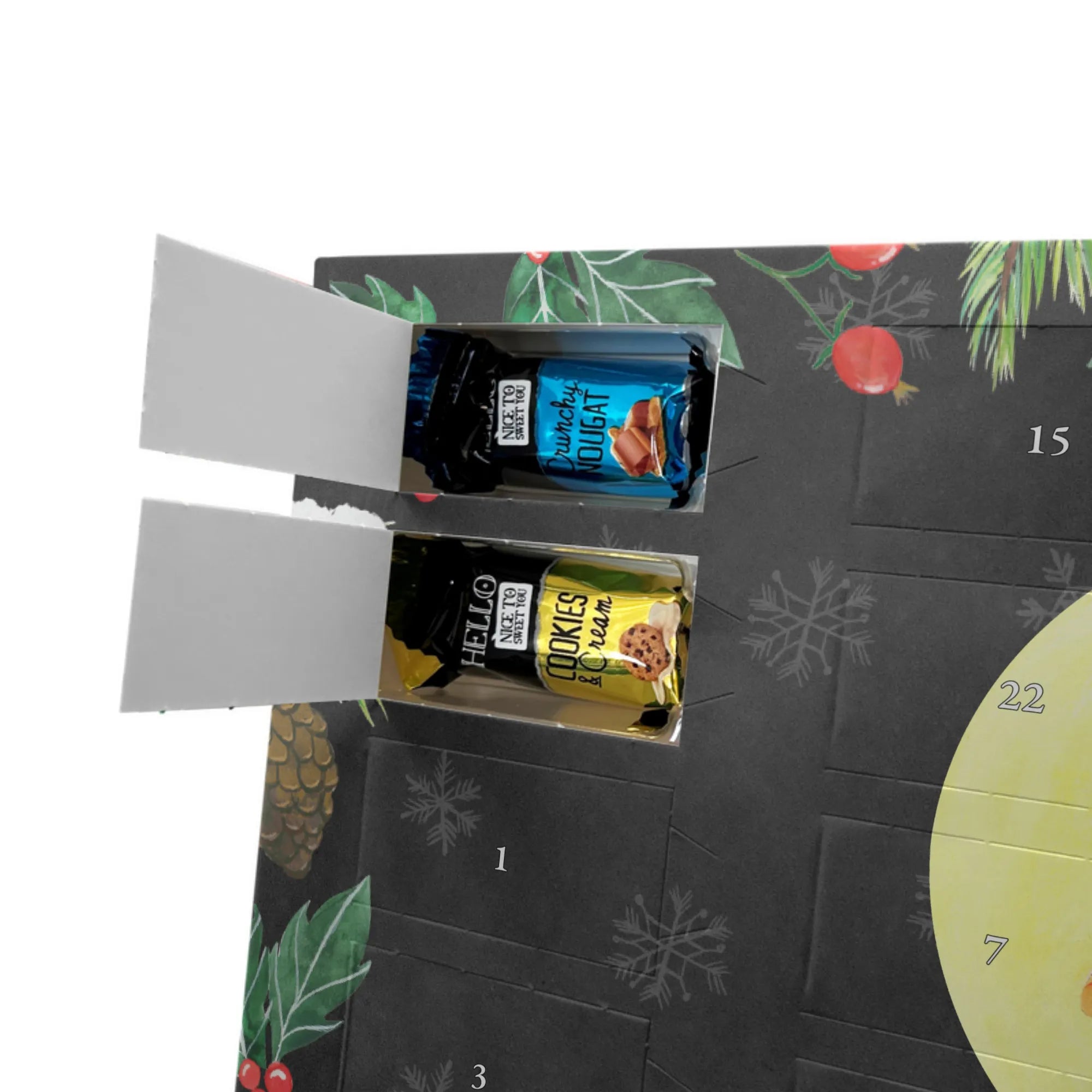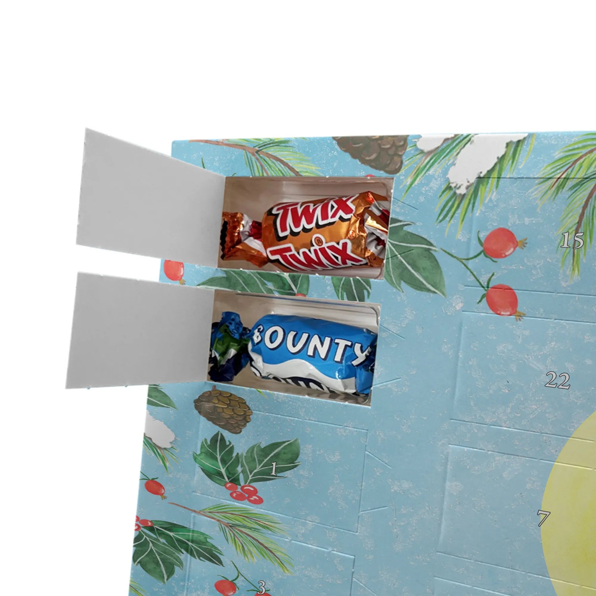 Personalisierter Schoko-Adventskalender von Mr. & Mrs. Panda – liebevoll gestaltet und ideal als individuelles Geschenk in der Adventszeit. Wir bedrucken den Kalender mit zauberhaften Motiven & herzlichen Sprüchen und personalisieren ihn mit deinem Wunschnamen oder Wunschtext. Die hochwertige Druckqualität kombiniert mit einer seidenmatten Oberflächenveredelung sorgt für ein edles Erscheinungsbild, und die bedruckten Seitenflächen geben dem Motiv zusätzlichen Charme. Der Kalender kann aufgehängt oder aufgestellt werden, sodass du ihn flexibel platzieren kannst. Gefüllt ist der Kalender mit Celebrations, die 24 hochwertige Überraschungen in 8 verschiedenen Sorten beinhalten: Maltesers, Mars, Snickers, Twix, Milky Way, Bounty, Galaxy und Galaxy Caramel. Maße: 325 mm x 225 mm x 27 mm – handlich und doch großzügig für die kleinen Leckereien hinter den Türchen. Ob für Kinder, Partner oder beste Freunde: dieser personalisierte Schoko-Adventskalender macht das Warten auf Weihnachten bunter und leckerer. Verschenke eine persönliche Erinnerung und jeden Tag ein kleines Schokoladen-Glück!