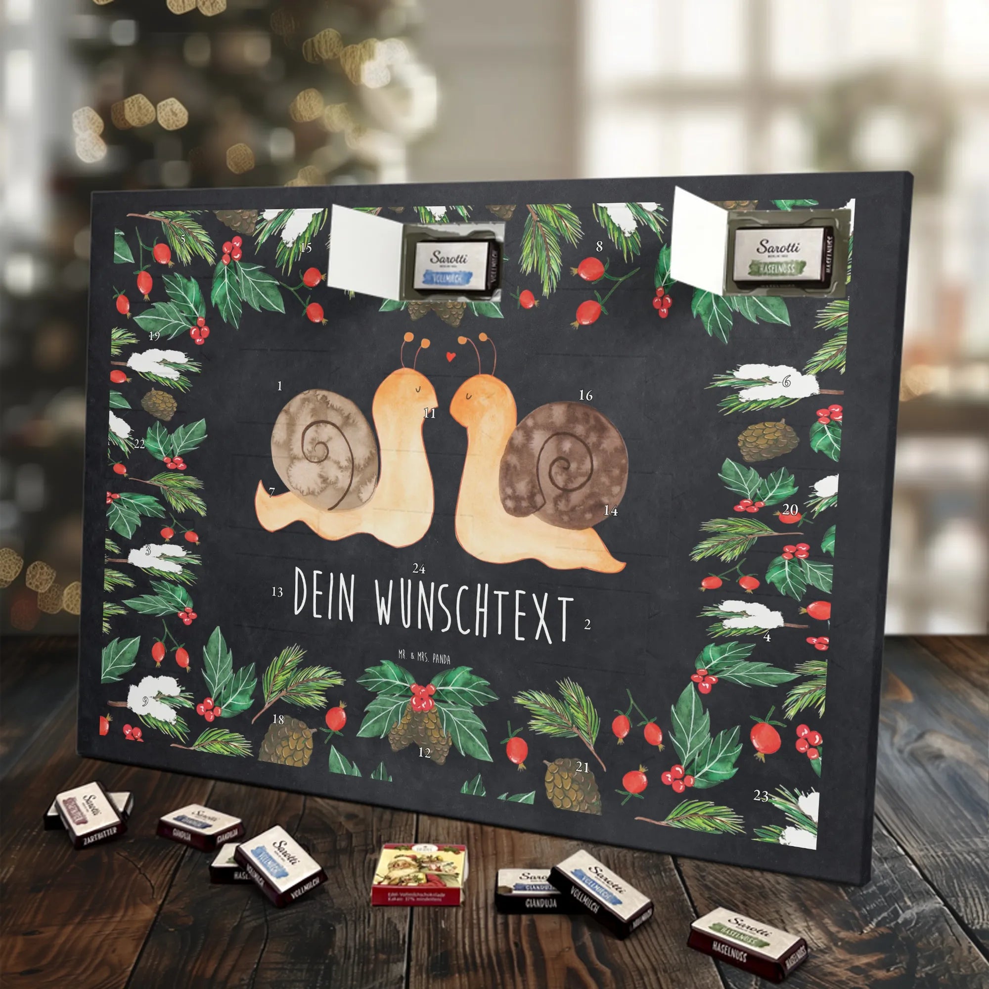 Personalisierter Schoko-Adventskalender von Mr. & Mrs. Panda – liebevoll gestaltet und ideal als individuelles Geschenk in der Adventszeit. Wir bedrucken den Kalender mit zauberhaften Motiven & herzlichen Sprüchen und personalisieren ihn mit deinem Wunschnamen oder Wunschtext. Die hochwertige Druckqualität kombiniert mit einer seidenmatten Oberflächenveredelung sorgt für ein edles Erscheinungsbild, und die bedruckten Seitenflächen geben dem Motiv zusätzlichen Charme. Der Kalender kann aufgehängt oder aufgestellt werden, sodass du ihn flexibel platzieren kannst. Gefüllt ist der Kalender mit Celebrations, die 24 hochwertige Überraschungen in 8 verschiedenen Sorten beinhalten: Maltesers, Mars, Snickers, Twix, Milky Way, Bounty, Galaxy und Galaxy Caramel. Maße: 325 mm x 225 mm x 27 mm – handlich und doch großzügig für die kleinen Leckereien hinter den Türchen. Ob für Kinder, Partner oder beste Freunde: dieser personalisierte Schoko-Adventskalender macht das Warten auf Weihnachten bunter und leckerer. Verschenke eine persönliche Erinnerung und jeden Tag ein kleines Schokoladen-Glück!