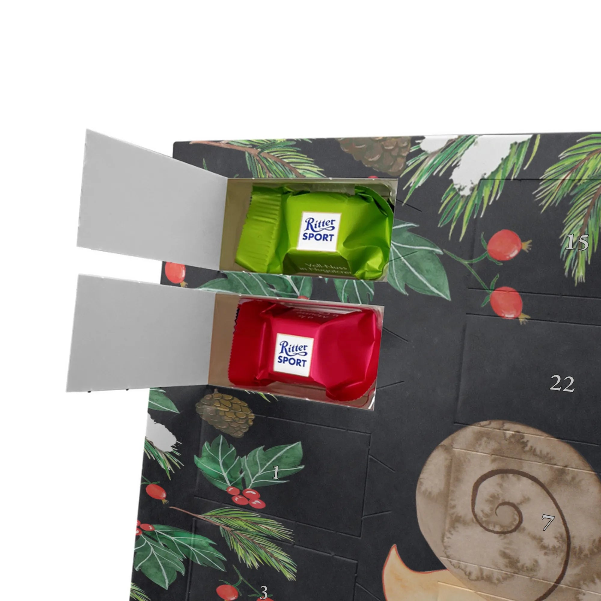 🐼 Personalisierter Schoko Adventskalender, seidenmatt und mit Ritter Sport Schokowürfeln.