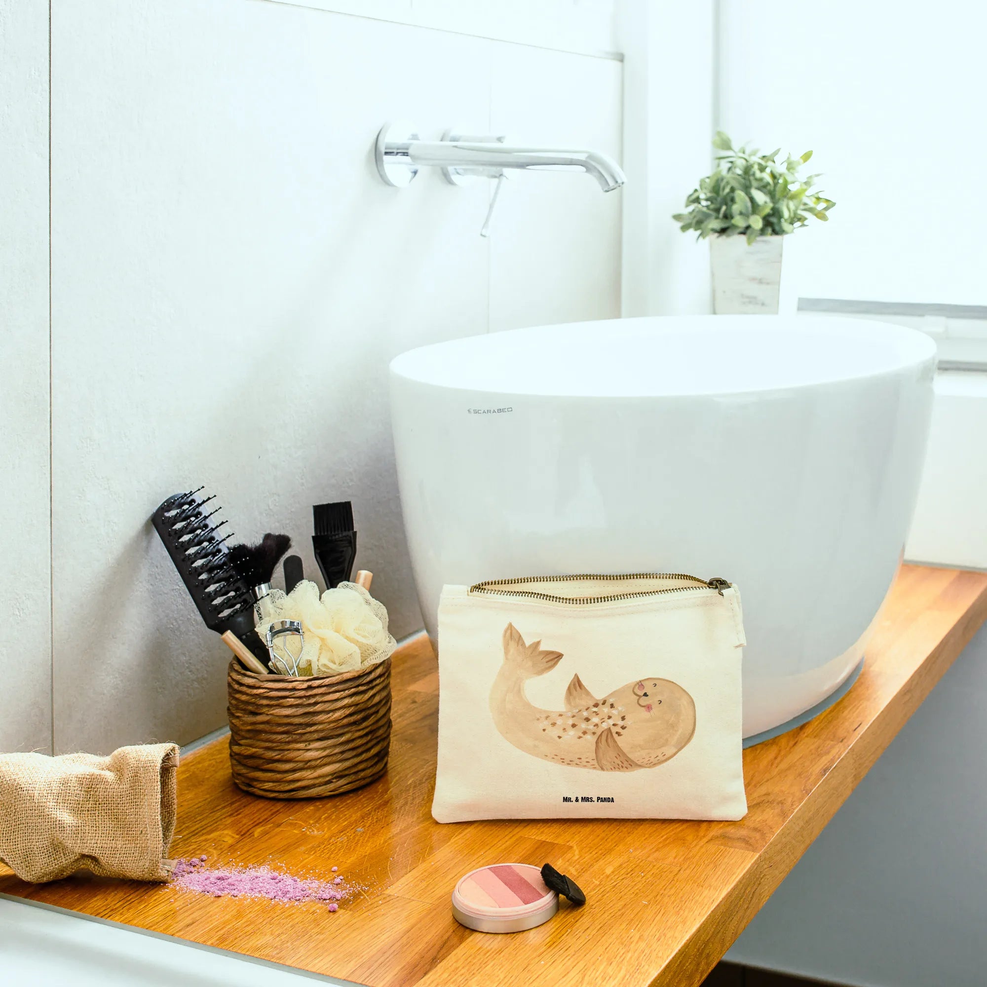 Schminktasche Robbe Liegen - Grösse XL Große - mit Spruch