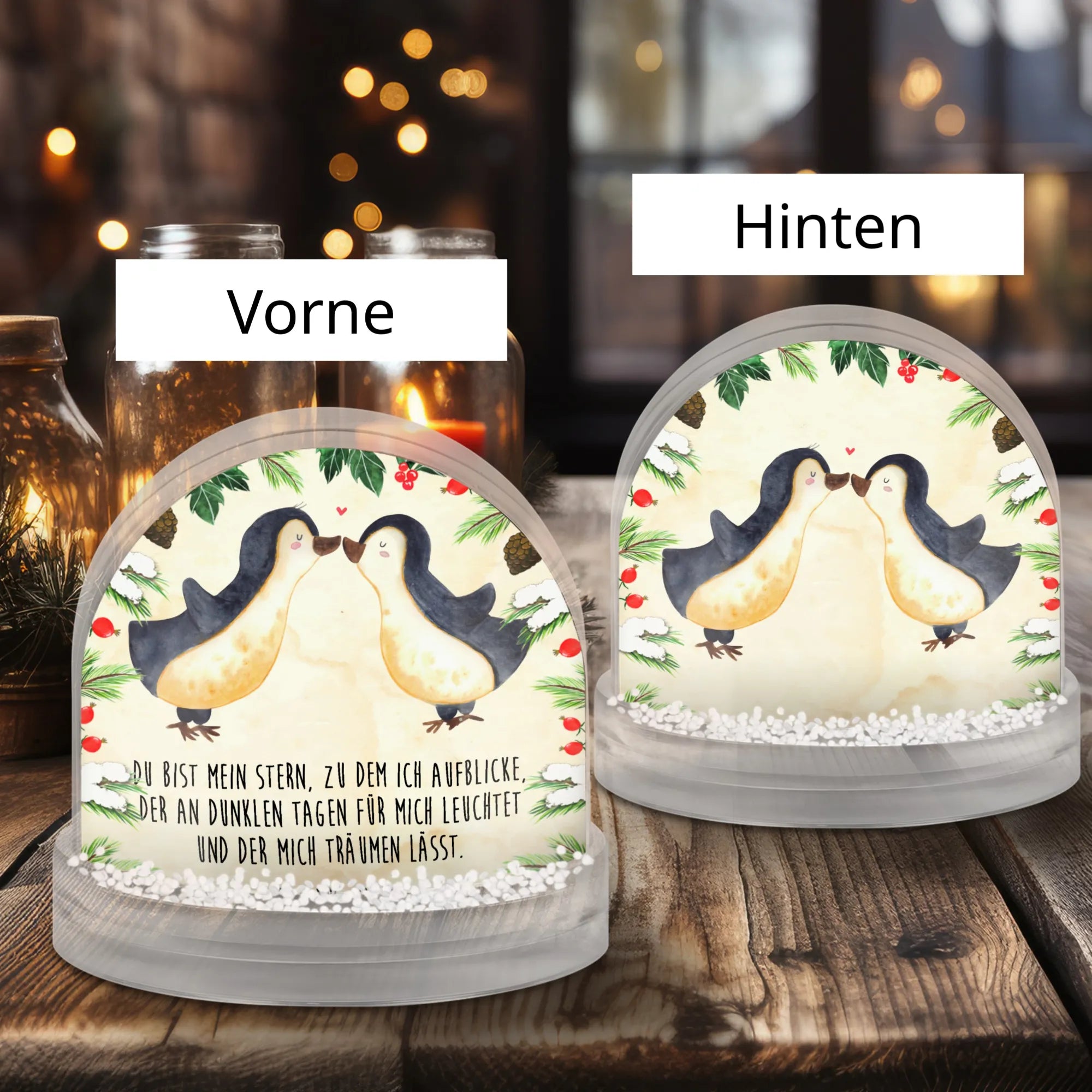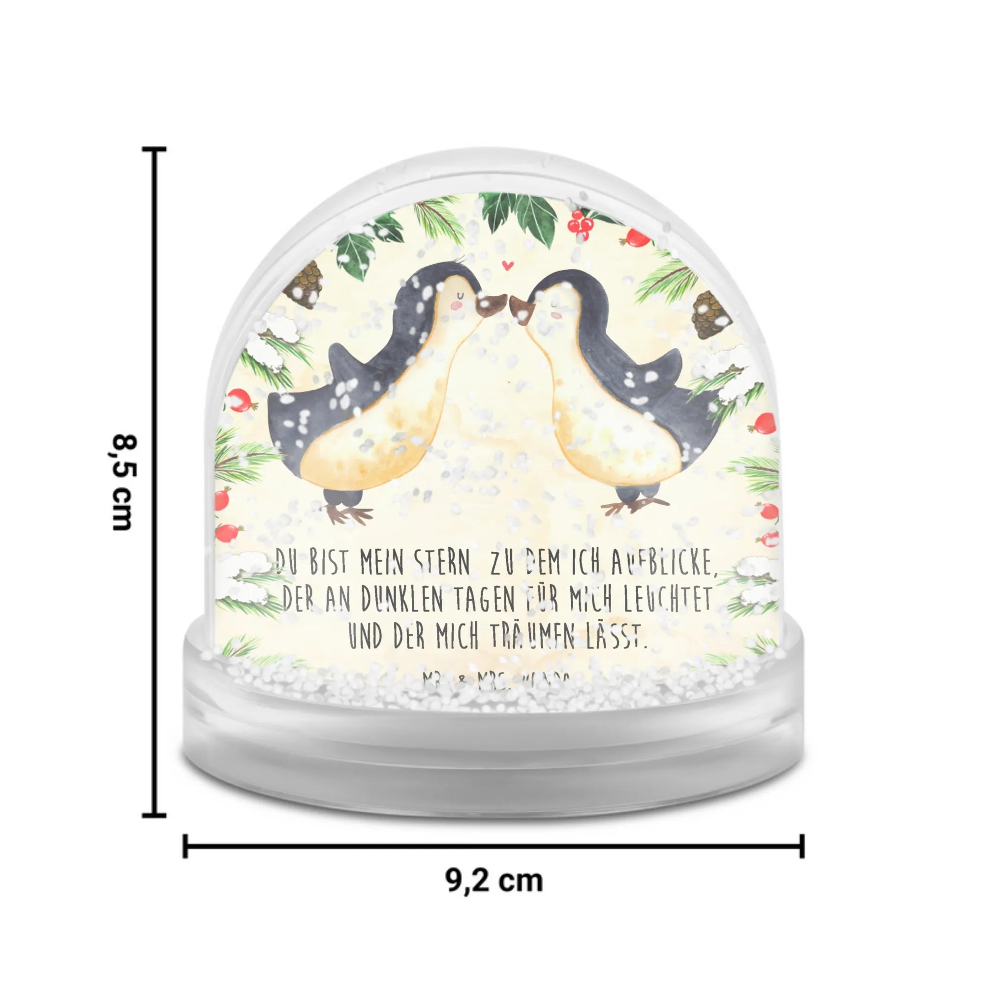 In der liebevollen Kollektion von Mr. & Mrs. Panda hält diese Schneekugel die Magie der Liebe fest. Der süße Anblick der verliebten Pinguine, die sich mit geschlossenen Augen sanft berühren, zaubert ein Lächeln auf jedes Gesicht. Über ihnen schwebt ein kleines Herz, das die Zuneigung und Verbundenheit symbolisiert.