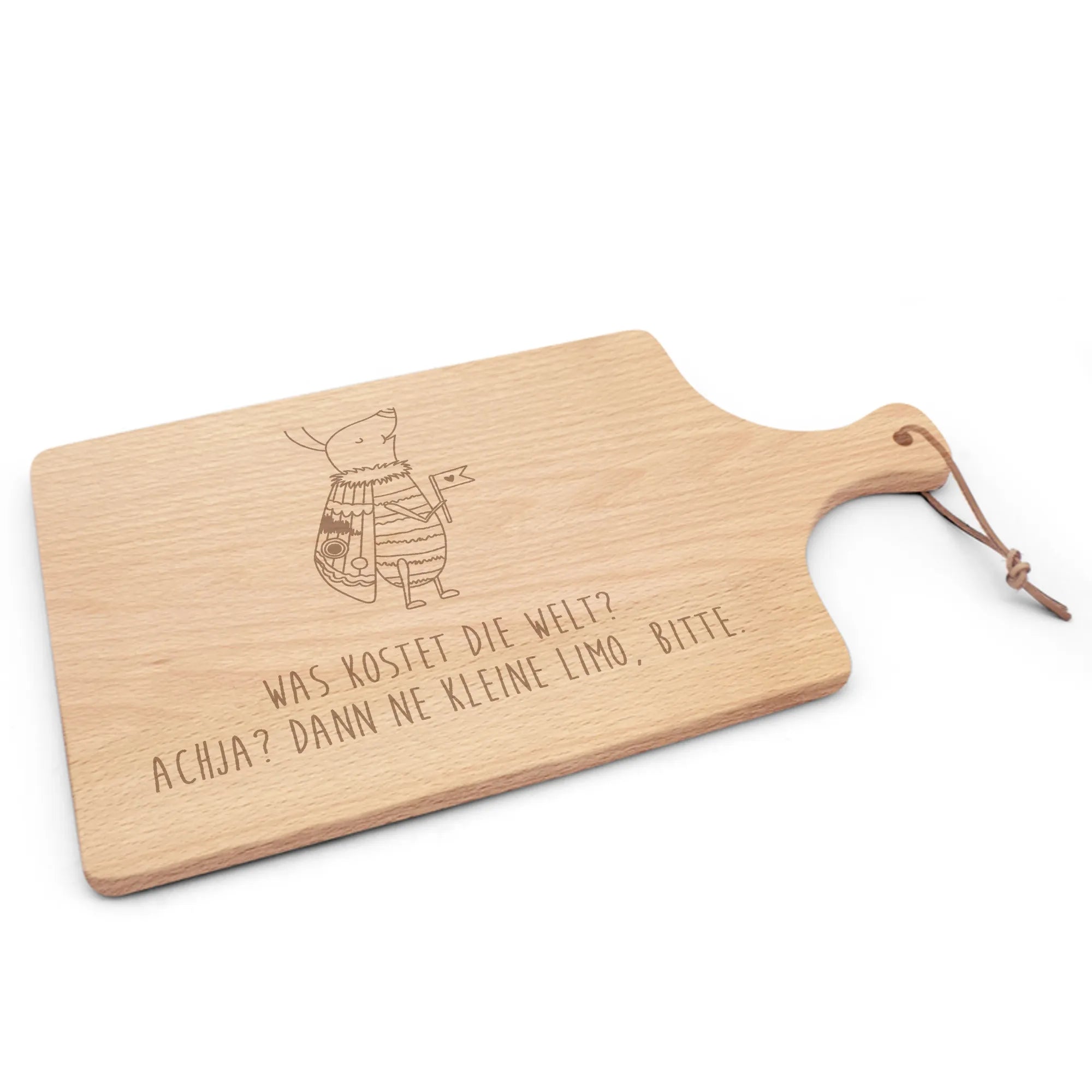 Mach jede Brotzeit besonders – sichere dir jetzt das stilvolle Brett Buche mit Griff und liebevoller Gravur von Mr. & Mrs. Panda!