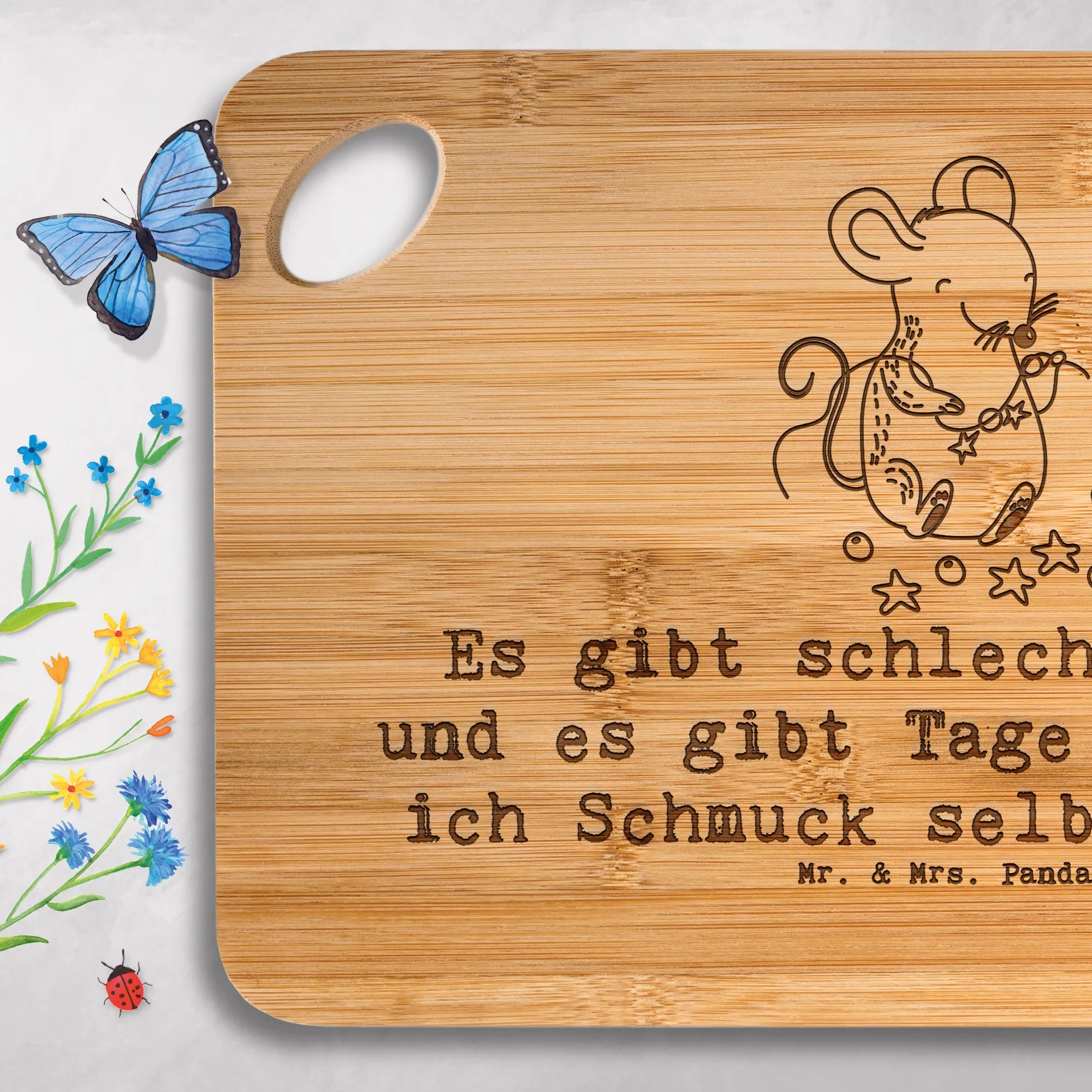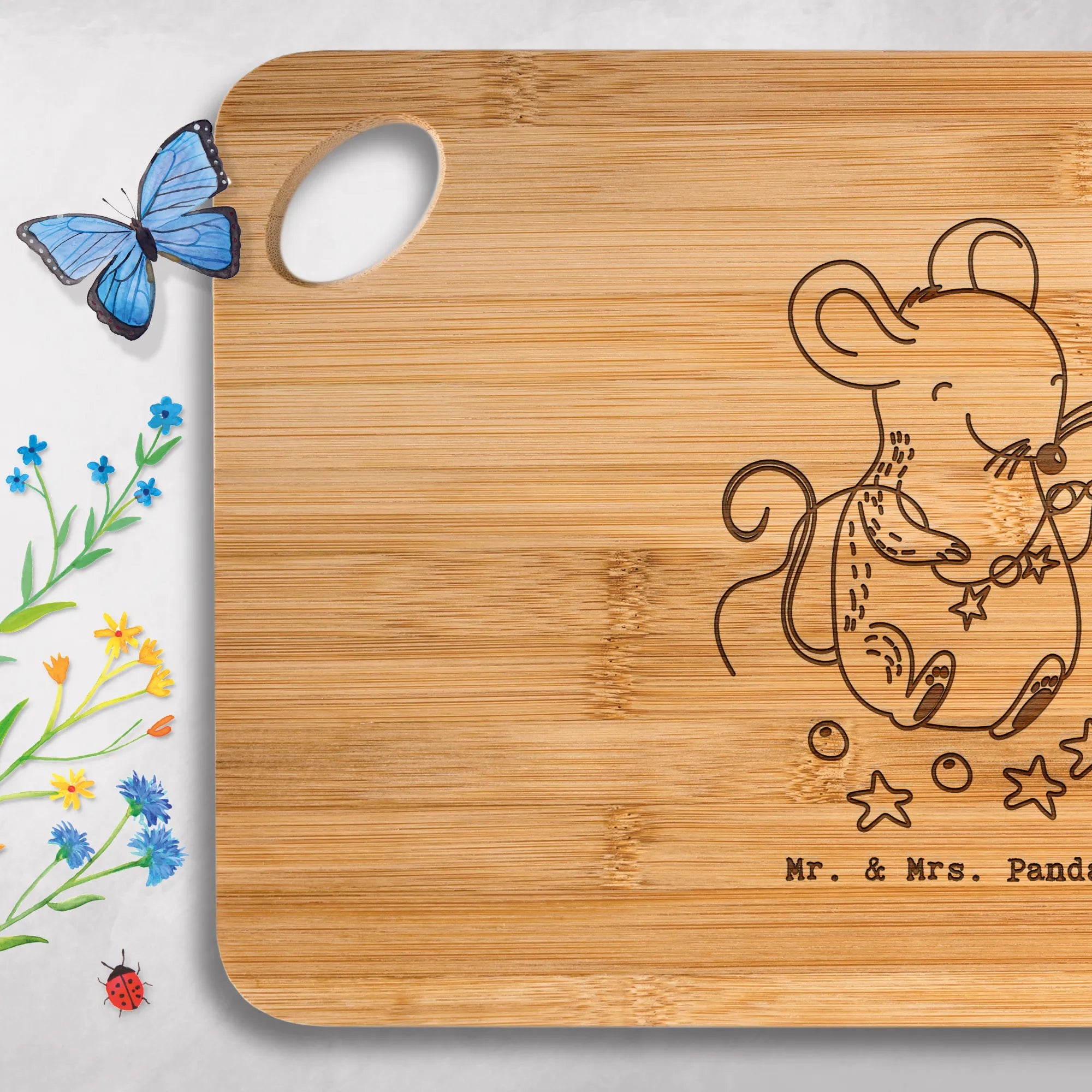 Gönn dir das bezaubernde Holzbrett von Mr. & Mrs. Panda – praktisch, robust und mit liebevoller Gravur!