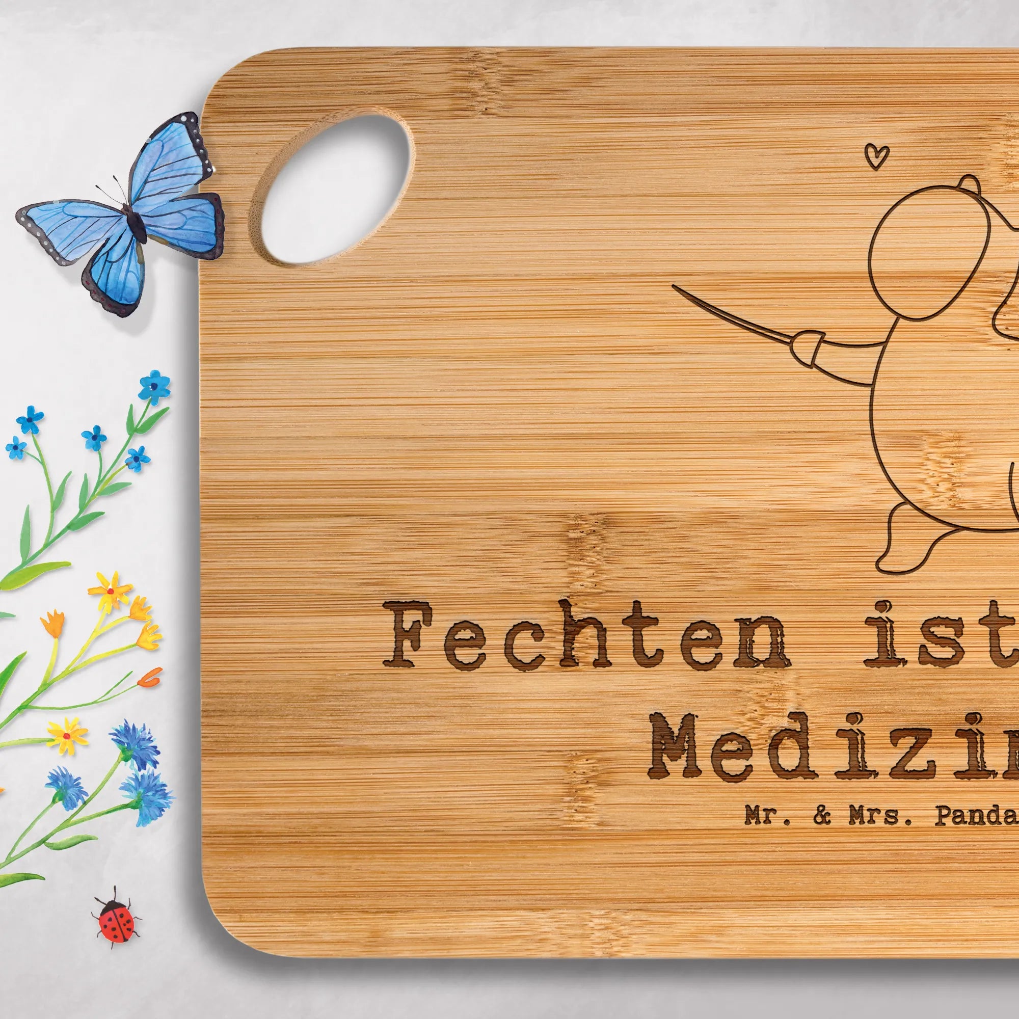 Schneidebrett Panda Fechten - mit Spruch