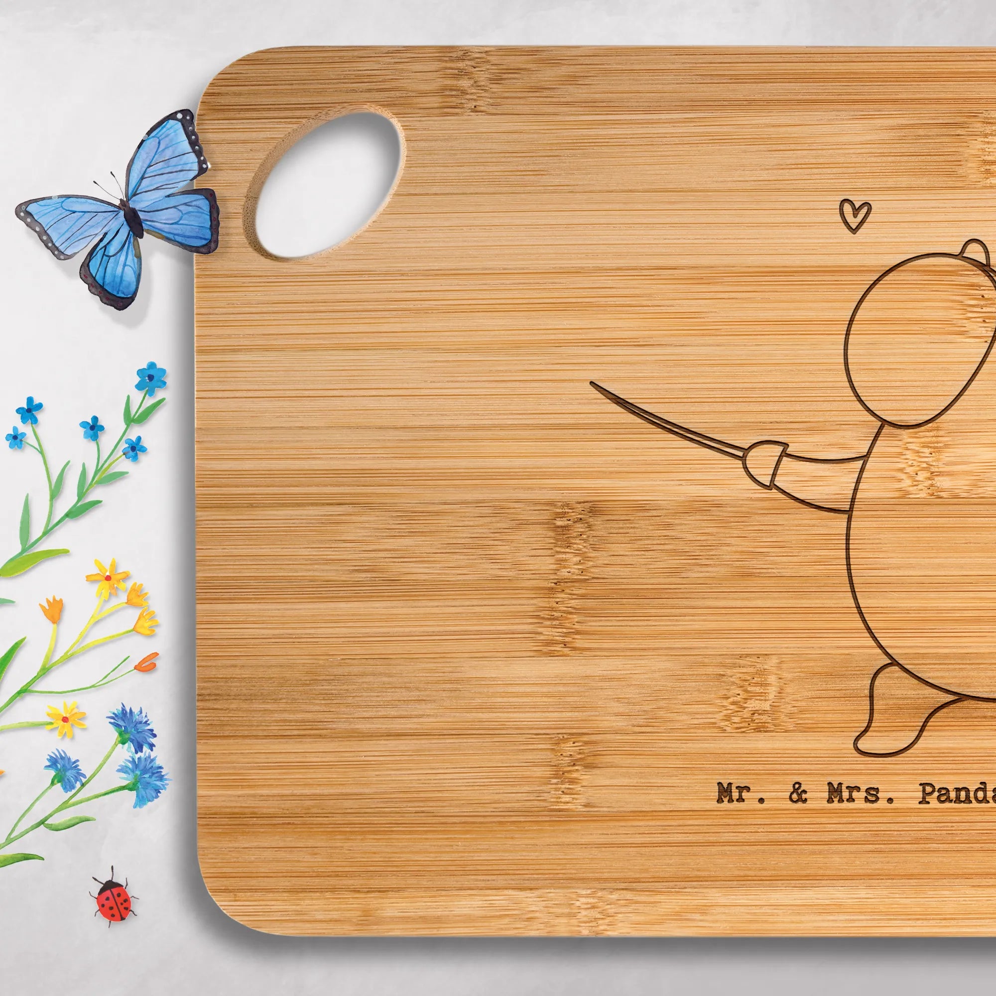 Hol dir jetzt dein liebevoll graviertes Schneidebrett von Mr. & Mrs. Panda – praktische Größe, zeitloses Design, Freude beim Zubereiten!
