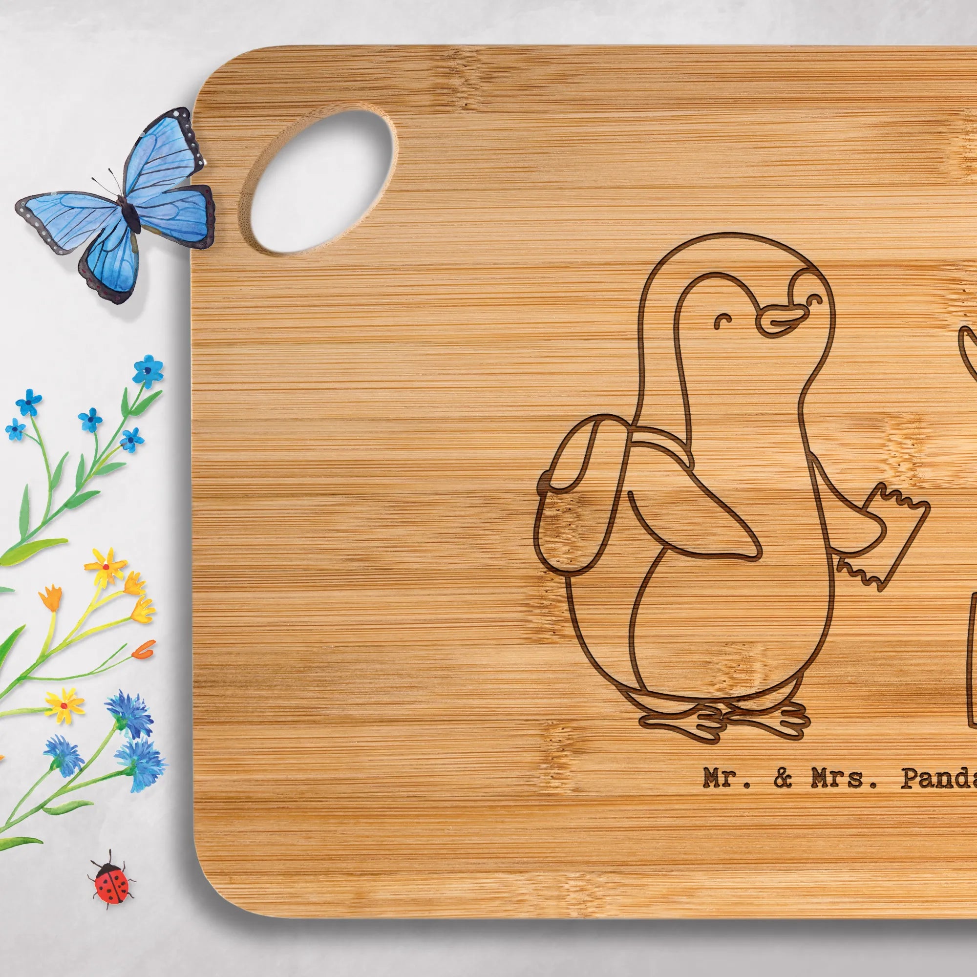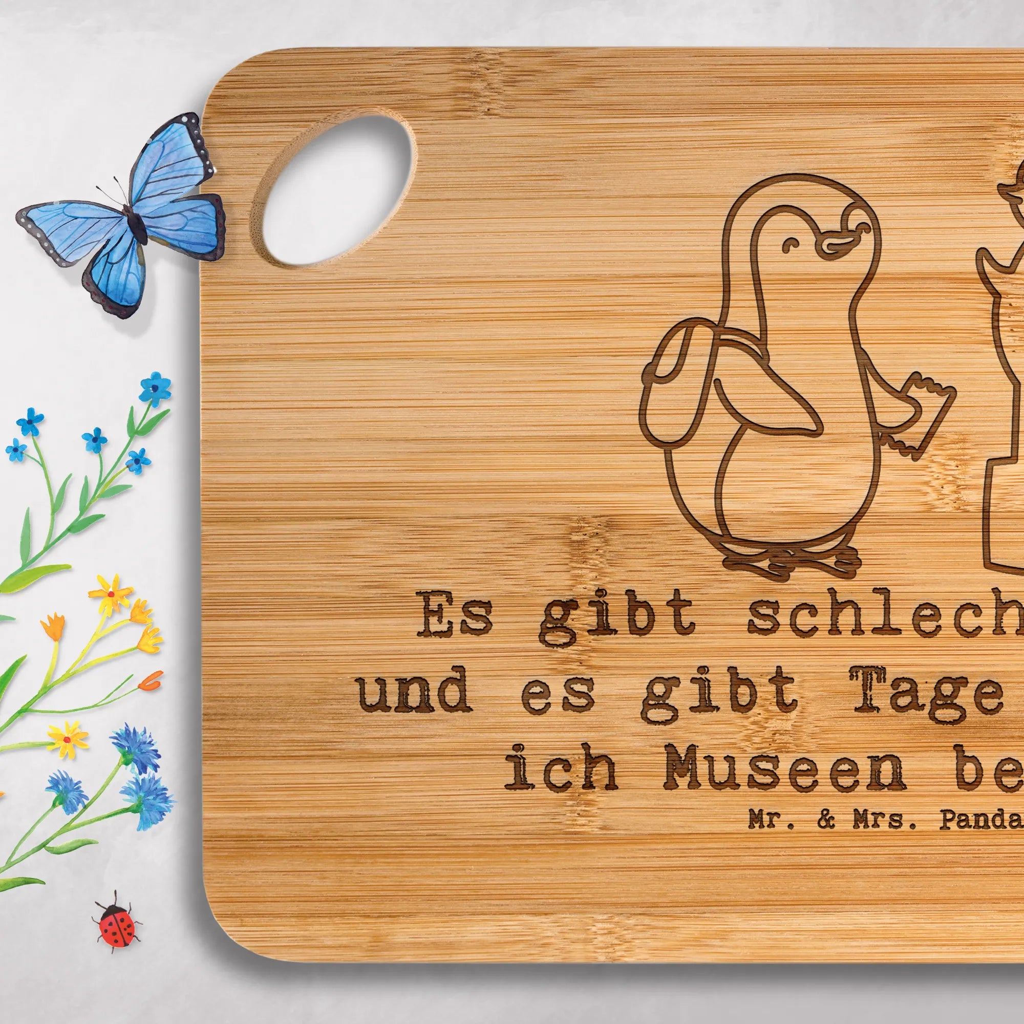Servierbrett Pinguin Museum besuchen - mit Spruch