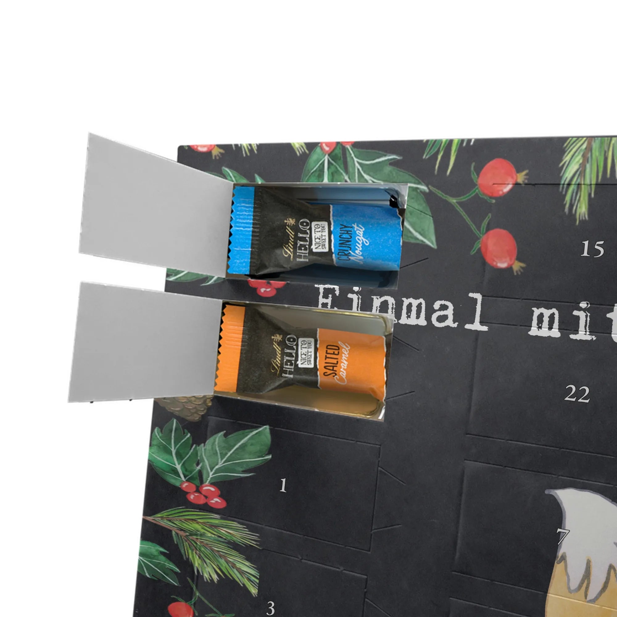 Unser liebevoller Schokoladen Adventskalender von Mr. & Mrs. Panda ist perfekt für alle, die sich eine fröhliche und süße Adventszeit wünschen. Aufwendig bedruckt mit unseren typischen Motiven & Sprüchen, nicht personalisierbar – dafür aber unglaublich hübsch anzusehen. Die brillante Druckqualität mit seidenmatter Oberflächenveredelung verleiht dem Kalender ein edles Aussehen, und die bedruckten Seitenflächen runden das Design ab. Maße: 233 mm x 178 mm x 24 mm. Besonderheit: kann aufgehängt oder aufgestellt werden, so bleibt er flexibel für deinen Deko-Stil. Gefüllt mit Lindt Lindor: 24 einzeln verpackte Markenschokoladen Kugeln in drei leckeren Sorten – Vollmilch, Feinherb und Weiße Schokolade – sorgen für tägliche Genussmomente. Zutaten: Zucker, pflanzliches Fett (Kokosnuss, Palmkern), Kakaobutter, Vollmilchpulver, Kakaomasse, Milchzucker, Magermilchpulver, Butterreinfett, Emulgator (Sojalecithin), Gerstenmalzextrakt, Aromen. Besondere Hinweise: Kann Haselnüsse und Mandeln enthalten. Ein tolles Geschenk oder eine hübsche Dekoration – unser Schokoladen Adventskalender macht die Wartezeit bis Weihnachten noch schöner!