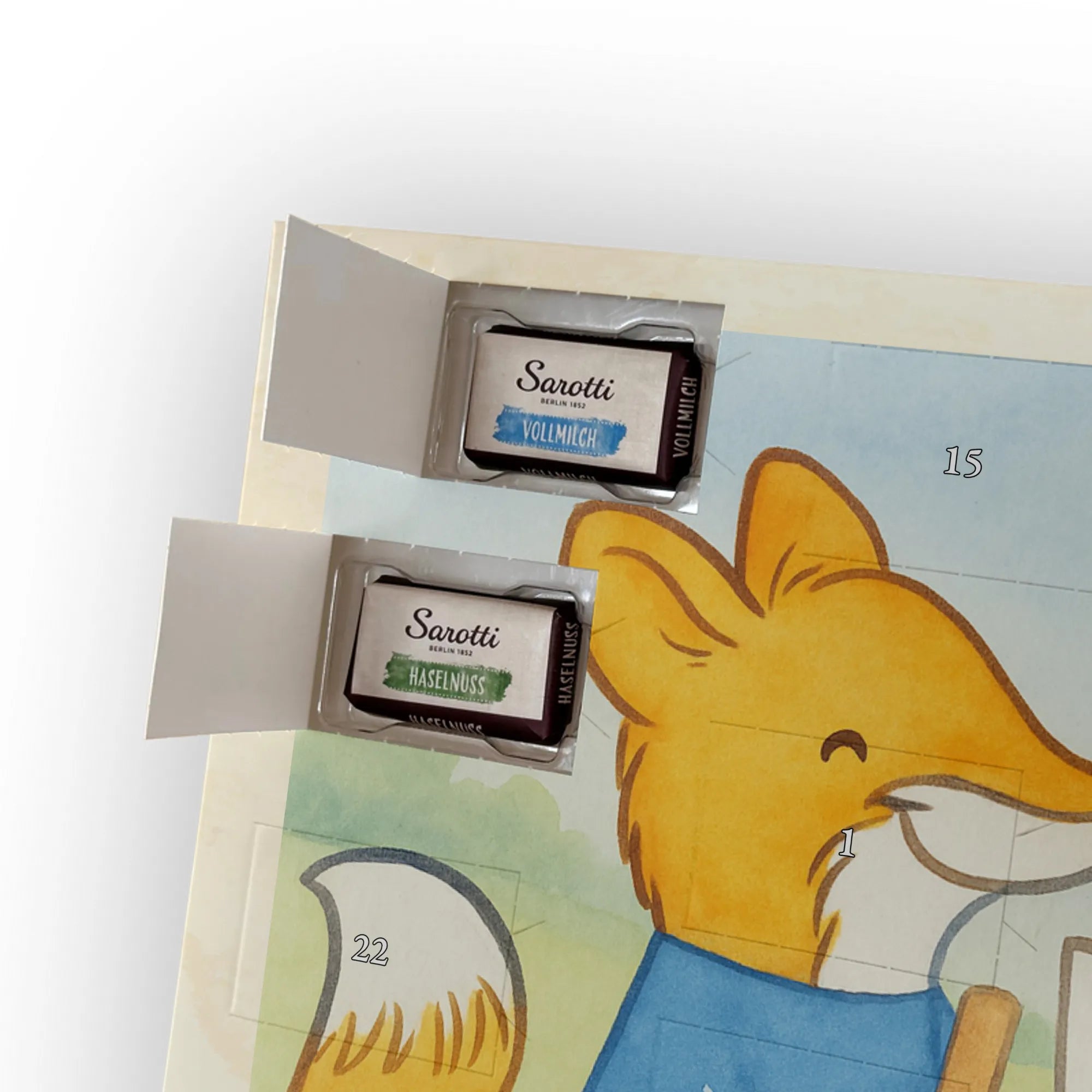 🐼 SCHOKOLADEN-ADVENTSKALENDER: Edler, seidenmatter Druck mit liebevollen Illustrationen.