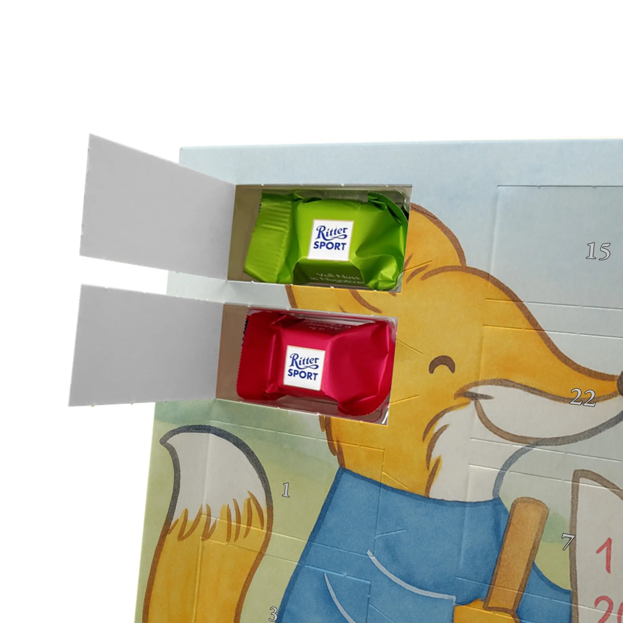 Unser entzückender Schokoladen Adventskalender von Mr. & Mrs. Panda ist das perfekte Highlight für die Adventszeit. Bedruckt mit wunderschönen Motiven & Sprüchen von Mr. & Mrs. Panda zaubert er dir ein Lächeln an jedem Tag im Dezember. Der Kalender ist nicht personalisierbar, überzeugt aber durch brillante Druckqualität mit seidenmatter Oberflächenveredelung und sorgsame bedruckte Seitenflächen. Die stabile Verarbeitung macht ihn zu einem dekorativen Hingucker. Maße: 325 mm x 225 mm x 27 mm. Besonders praktisch: Er kann aufgehängt oder aufgestellt werden, ganz nach deinem Geschmack und Platzangebot. Gefüllt ist der Adventskalender mit Ritter Sport Schokowürfeln – in verführerischen Sorten wie Mousse au Chocolat, Schoko Crisp, Voll-Nuss in Nougatcreme, Karamell Duo, Joghurt und Erdbeer-Joghurt. Wichtiger Hinweis: Es handelt sich um einen Kalender gefüllt mit Ritter Sport Schokolade, nicht um einen Kalender der Marke Ritter Sport. Schenk ihn Freunden, der Familie oder gönn dir selbst eine süße Vorfreude: kleine Schokoladenmomente, liebevoll verpackt von Mr. & Mrs. Panda.