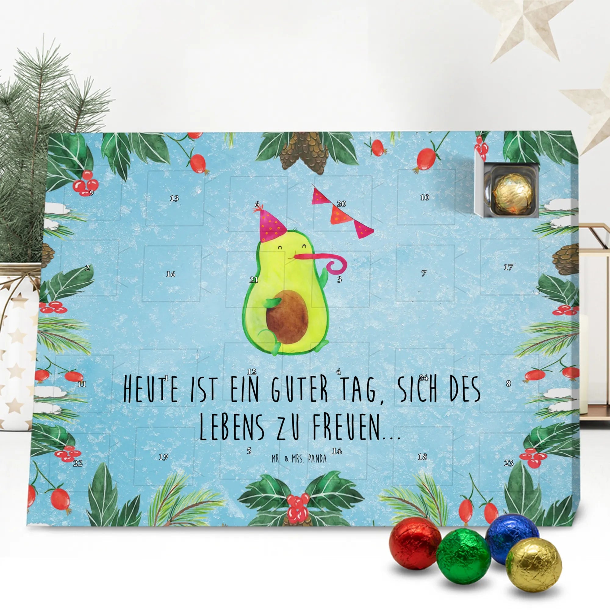 Weihnachtskalender Schokolade Avocado Party - Classic - mit Spruch - Eisblau