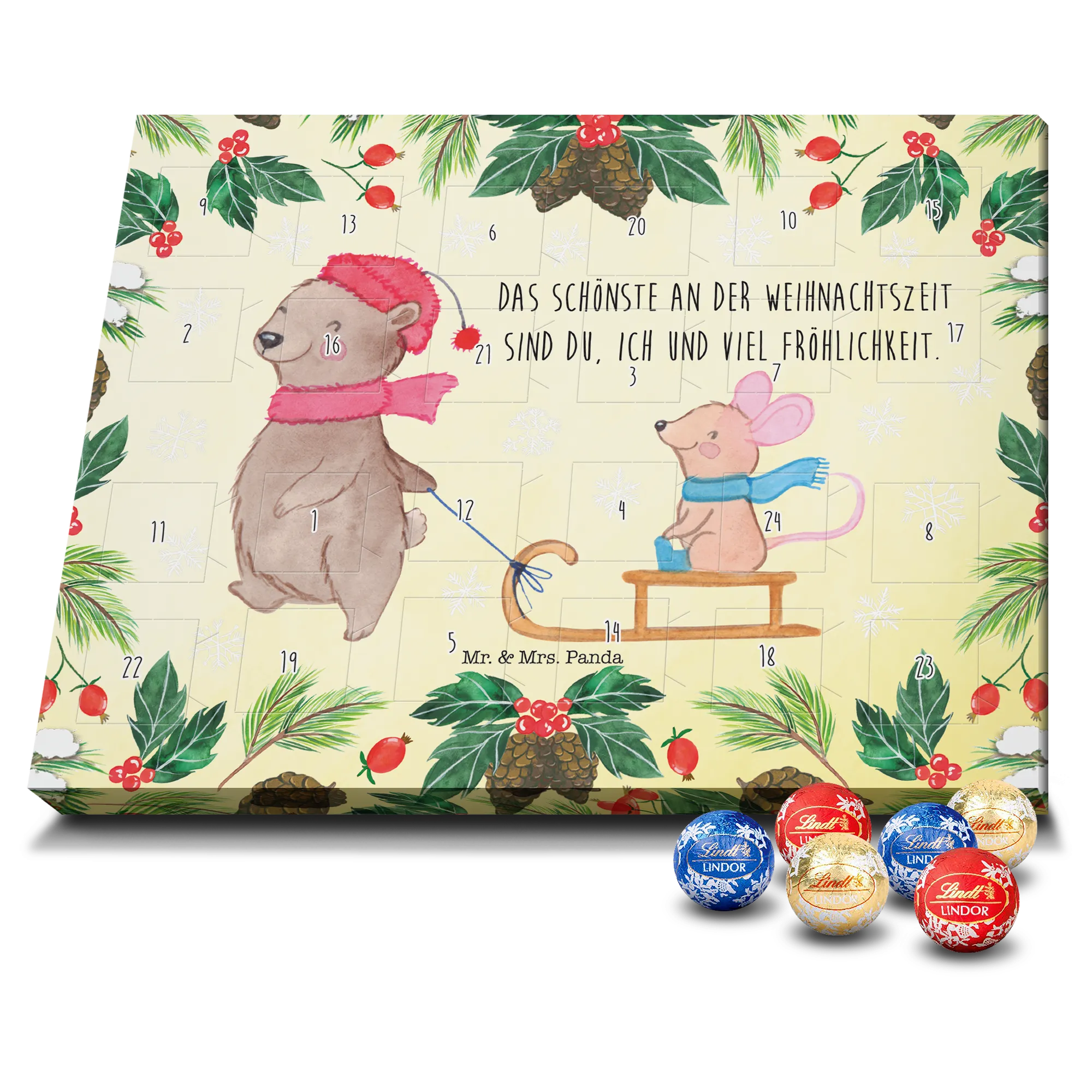 🐼 Adventskalender mit Schokolade: 24 Lindt Lindor Kugeln, ideal als Geschenk für Familie & Freunde.
