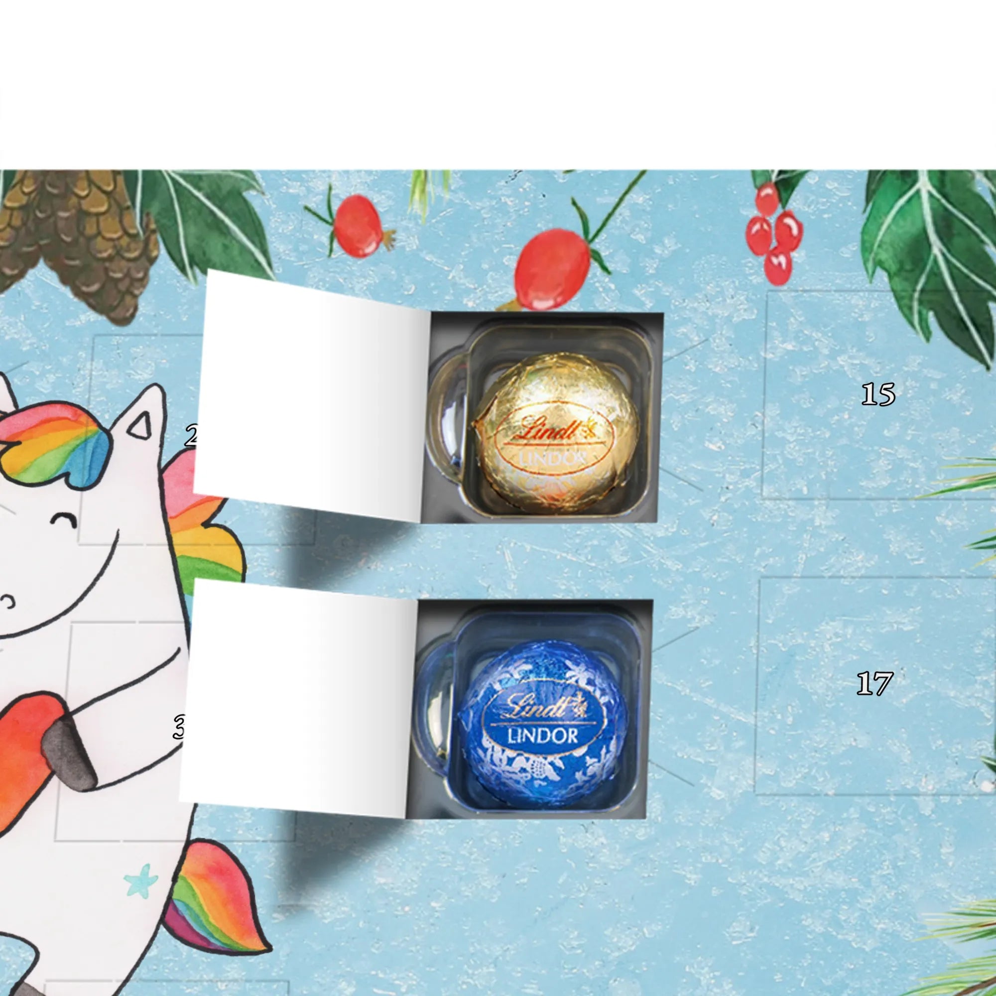 Unser liebevoller Schokoladen Adventskalender von Mr. & Mrs. Panda ist perfekt für alle, die sich eine fröhliche und süße Adventszeit wünschen. Aufwendig bedruckt mit unseren typischen Motiven & Sprüchen, nicht personalisierbar – dafür aber unglaublich hübsch anzusehen. Die brillante Druckqualität mit seidenmatter Oberflächenveredelung verleiht dem Kalender ein edles Aussehen, und die bedruckten Seitenflächen runden das Design ab. Maße: 233 mm x 178 mm x 24 mm. Besonderheit: kann aufgehängt oder aufgestellt werden, so bleibt er flexibel für deinen Deko-Stil. Gefüllt mit Lindt Lindor: 24 einzeln verpackte Markenschokoladen Kugeln in drei leckeren Sorten – Vollmilch, Feinherb und Weiße Schokolade – sorgen für tägliche Genussmomente. Zutaten: Zucker, pflanzliches Fett (Kokosnuss, Palmkern), Kakaobutter, Vollmilchpulver, Kakaomasse, Milchzucker, Magermilchpulver, Butterreinfett, Emulgator (Sojalecithin), Gerstenmalzextrakt, Aromen. Besondere Hinweise: Kann Haselnüsse und Mandeln enthalten. Ein tolles Geschenk oder eine hübsche Dekoration – unser Schokoladen Adventskalender macht die Wartezeit bis Weihnachten noch schöner!