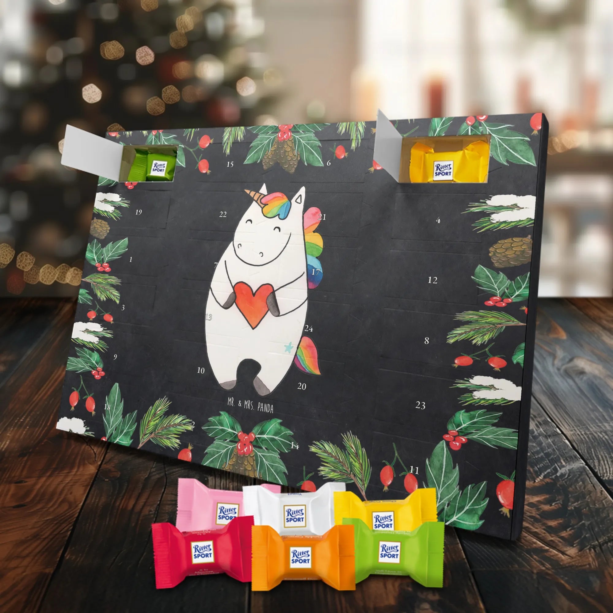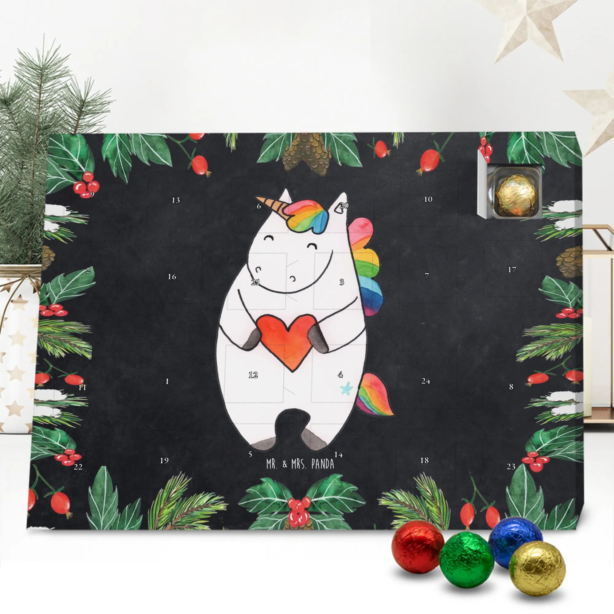 Schoko Adventskalender Einhorn Herz - Classic - mit Spruch - Kreidetafel