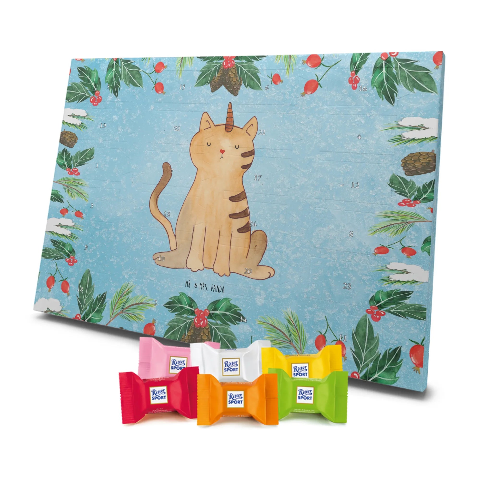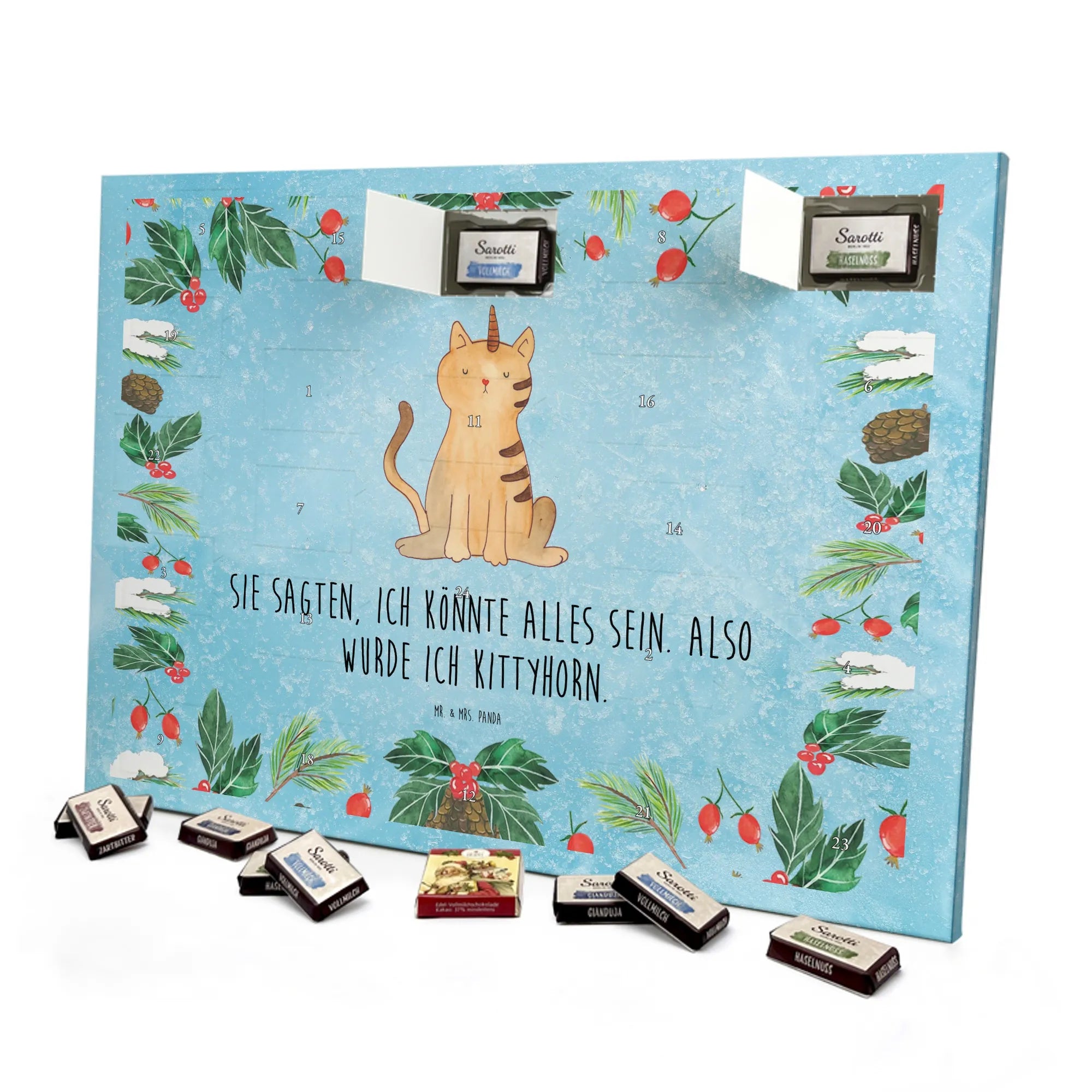 Weihnachtskalender Einhorn Katze - Classic - mit Spruch - Eisblau
