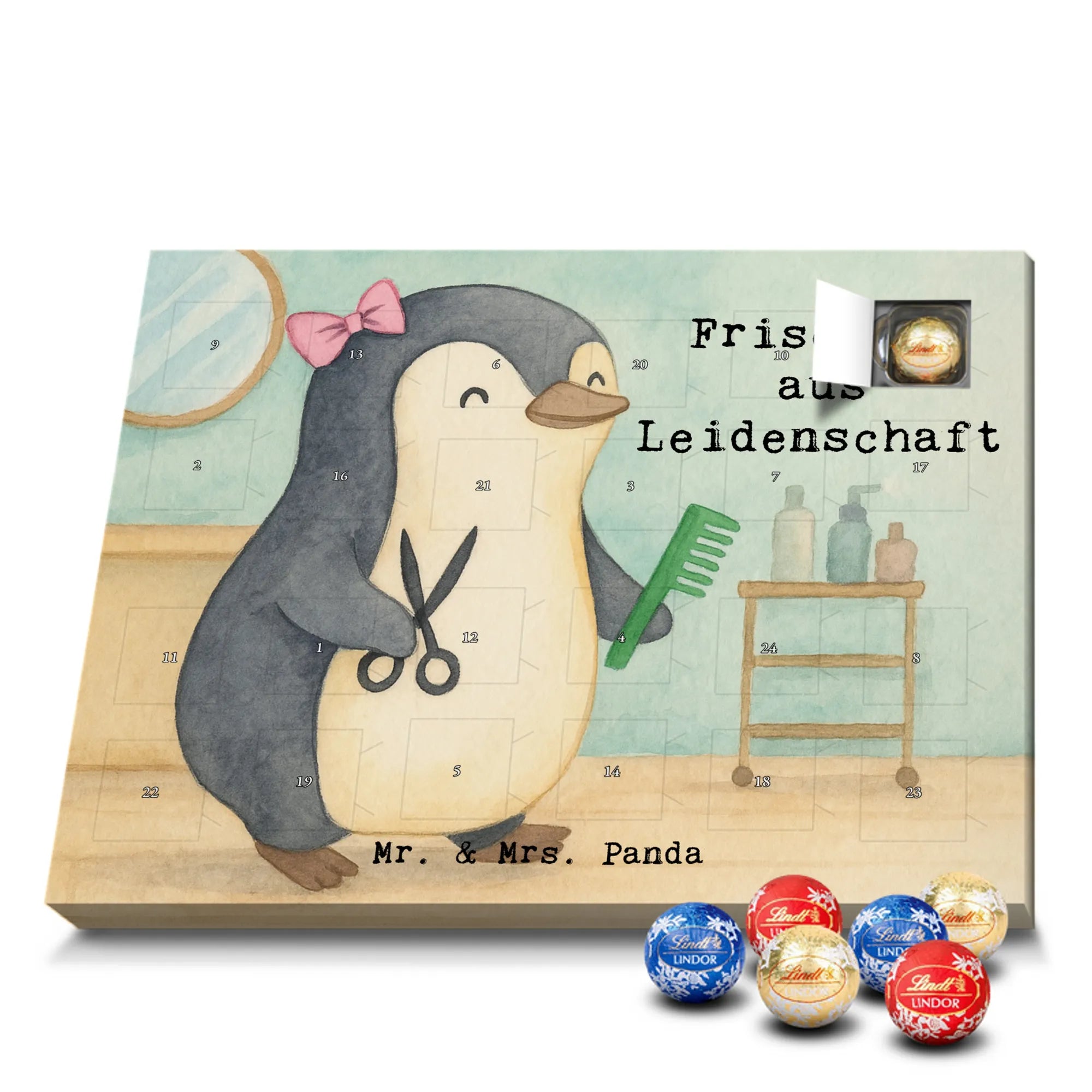🐼 Schoko Adventskalender mit Lindt Lindor, 24 Kugeln, seidenmatter Druck, nicht personalisierbar.