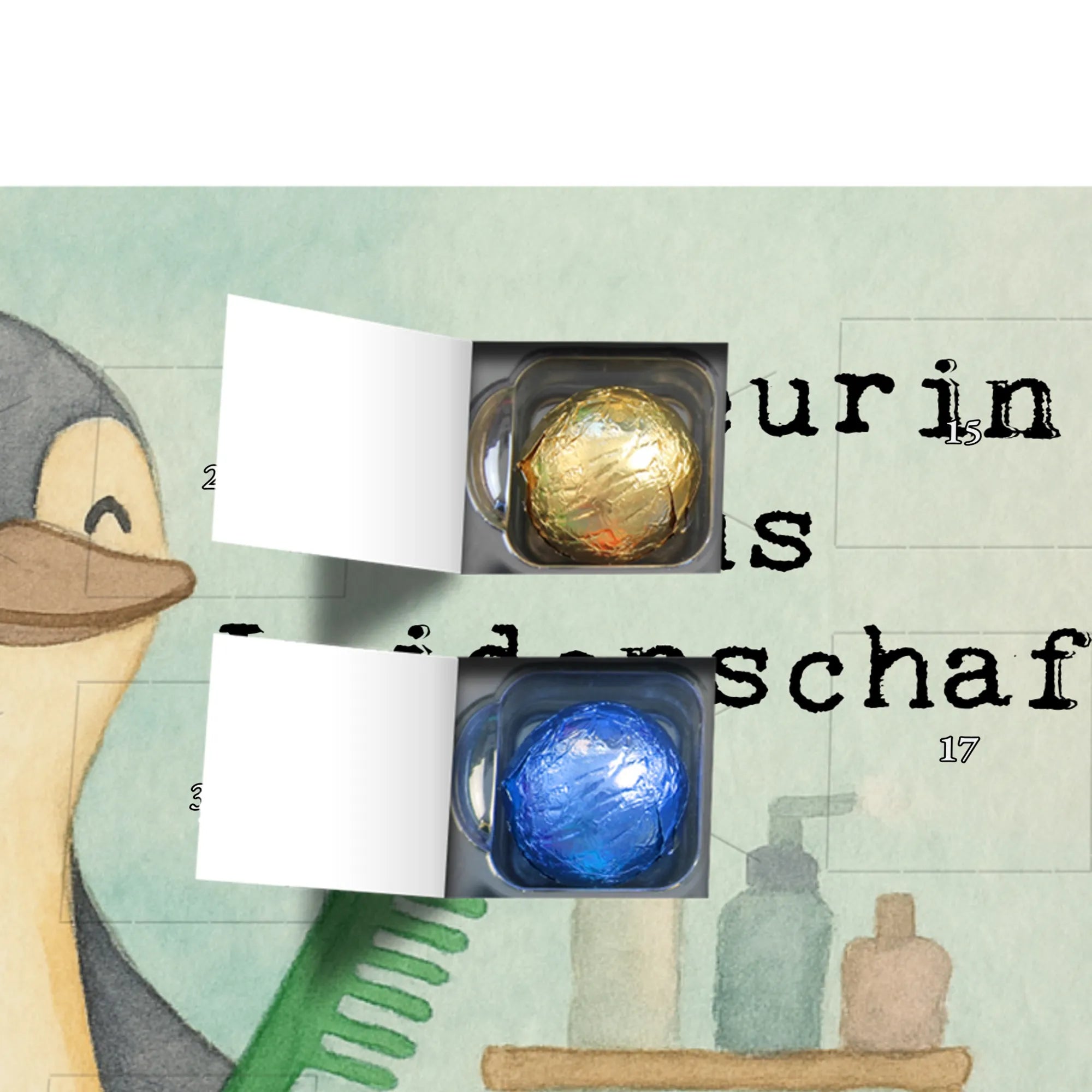 Unsere liebe Pinguin-Friseurin ist ein echtes Wunderwerk! Mit einem Kamm und ihren kreativen Ideen begrüßt sie jeden Kunden in ihrem Friseursalon. Ihr Motto "Friseurin aus Leidenschaft" zeigt, wie sehr sie ihre Arbeit liebt. Egal ob schicker Schnitt oder frische Farbe, sie bringt jeden Wunsch in Erfüllung. Ihr Fingerspitzengefühl und ihre Leidenschaft für Haarstyling sorgen dafür, dass jeder Frisörbesuch ein Highlight wird. Komm vorbei und erlebe, wie sie mit Liebe und Geschick deine Haare zum Strahlen bringt. Hier ist der Friseursalon nicht nur ein Ort für Haarschnitte, sondern ein Platz voller Freude und Inspiration.