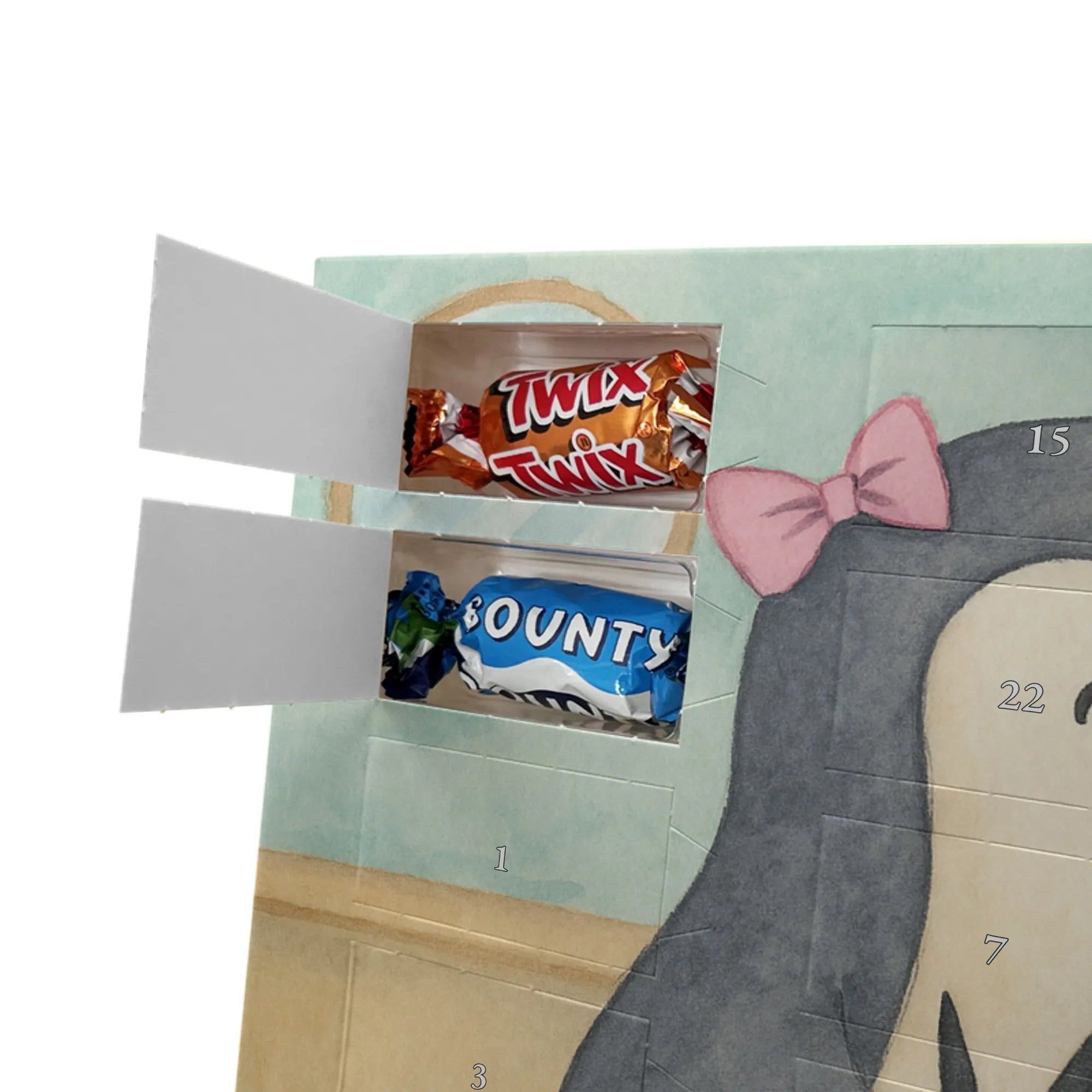 Mach die Adventszeit süßer: Entdecke unseren bedruckten Schokoladen Adventskalender von Mr. & Mrs. Panda und verschenke täglich Freude!