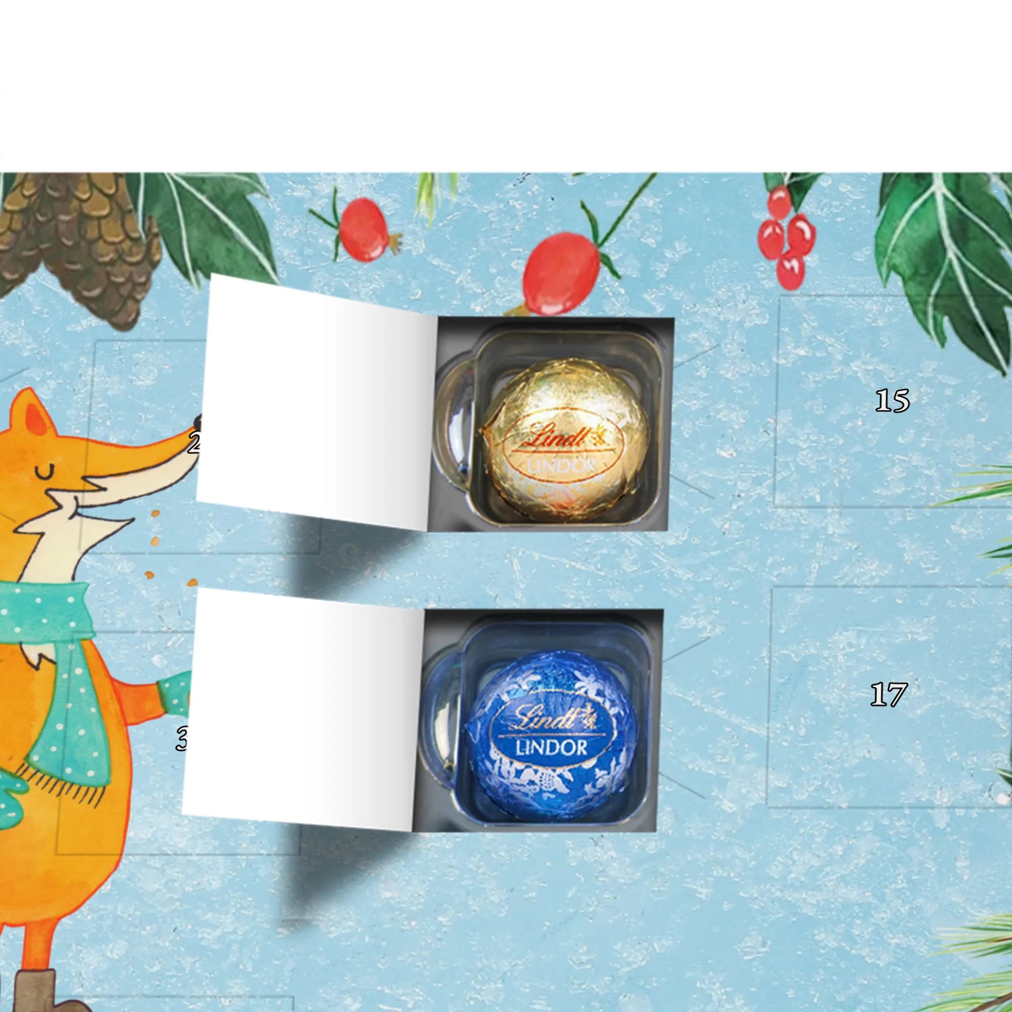 adventskalender pralinen Fuchs Keks - Classic - mit Spruch - Eisblau
