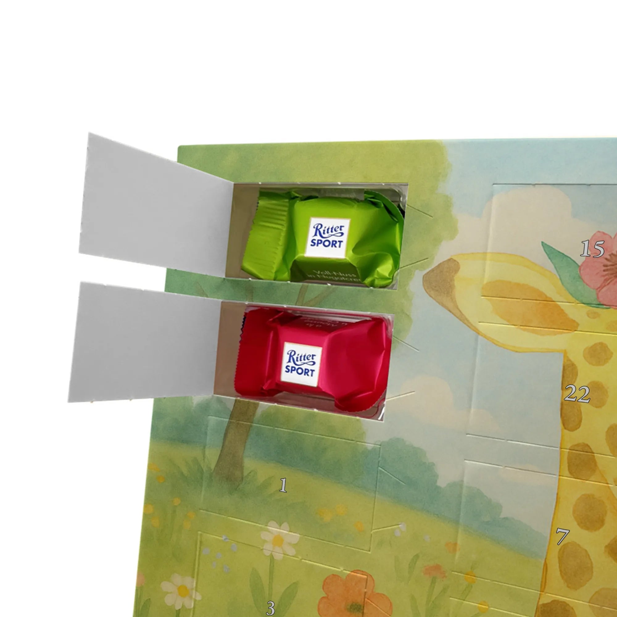 Adventskalender mit Schokolade – so schmeckt Vorfreude! Unser Mr. & Mrs. Panda Adventskalender ist liebevoll gestaltet und bedruckt mit wunderschönen Motiven & Sprüchen, die jeden Tag versüßen. Die brillante Druckqualität mit seidenmatter Oberflächenveredelung sorgt für ein edles Finish, und auch die Seitenflächen sind hübsch bedruckt. Der Kalender ist nicht personalisierbar, dafür aber vielseitig einsetzbar: Maße: 325 mm x 225 mm x 27 mm und die besondere Eigenschaft, dass du ihn aufgehängt oder aufgestellt verwenden kannst, geben dir Flexibilität bei der Dekoration. Gefüllt ist der Kalender mit Ritter Sport Schokowürfeln in beliebten Geschmacksrichtungen wie Mousse au Chocolat, Schoko Crisp, Voll-Nuss in Nougatcreme, Karamell Duo, Joghurt und Erdbeer-Joghurt. Wichtig: Es handelt sich um einen Kalender gefüllt mit Ritter Sport Schokolade, nicht um einen Kalender der Marke Ritter Sport. Ideal als Geschenk oder als Adventsdeko für dein Zuhause – kleine Schokofreuden warten hinter jedem Türchen.