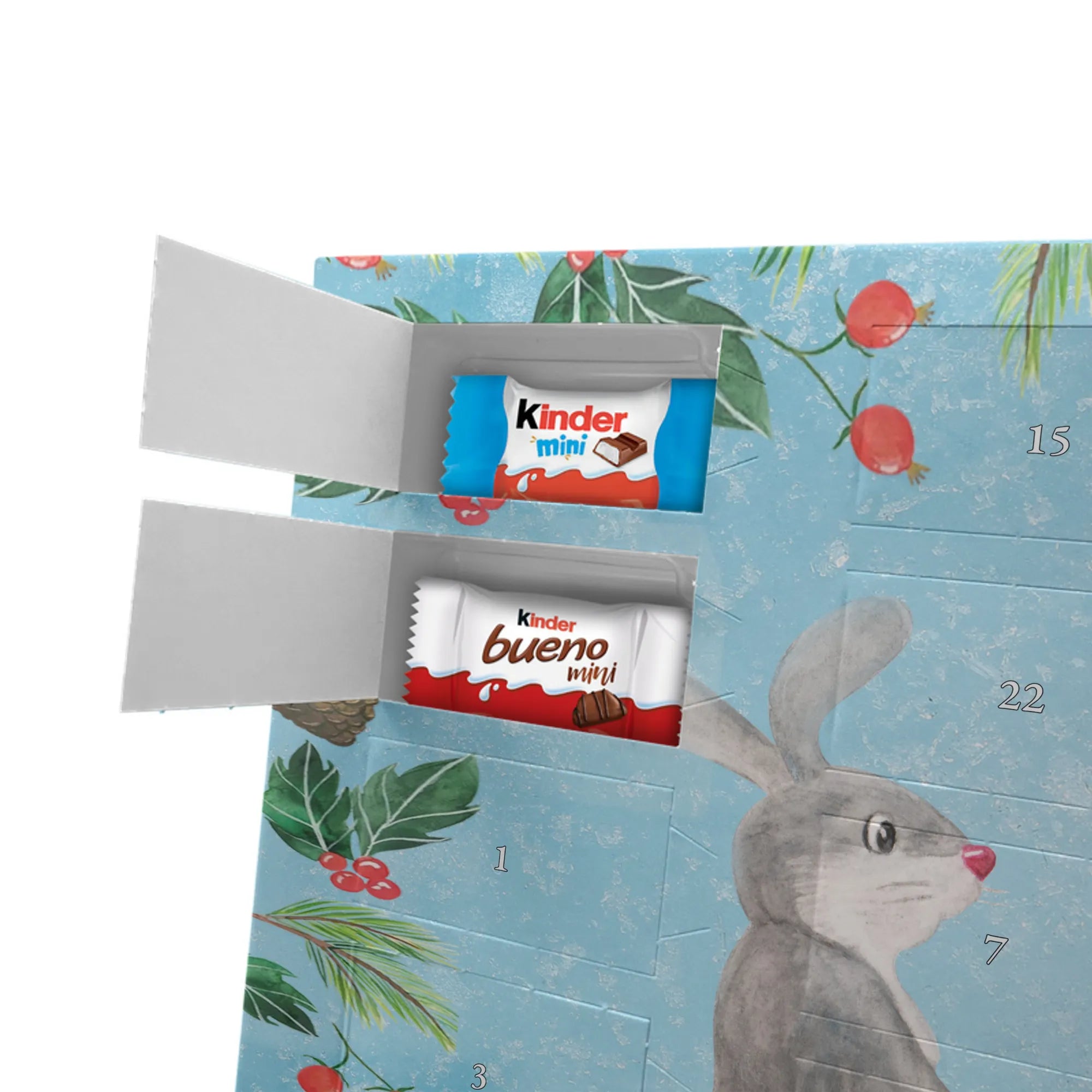 Adventskalender Hase Igel - Classic - mit Spruch - Eisblau